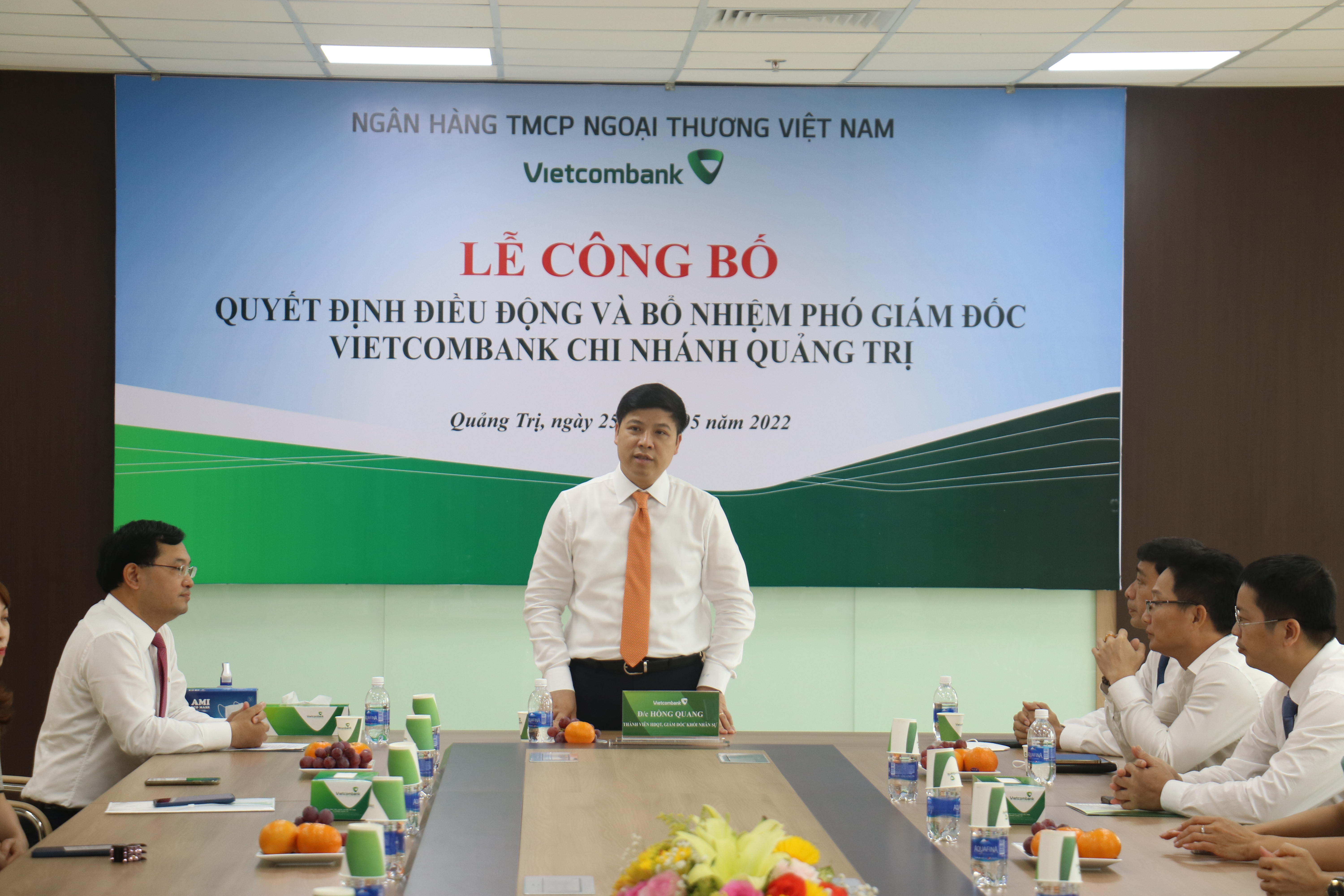 Tại buổi lễ, bà Nguyễn Thị Thái Hà - Phó Trưởng Ban Tổ chức & Nhân sự TSC đã công bố quyết định của Ban Điều hành về việc điều động và bổ nhiệm ông Võ Thanh Tân - Phó giám đốc Vietcombank Quảng Bình giữ chức vụ Phó giám đốc Vietcombank Quảng Trị kể từ ngày 24/5/2022.