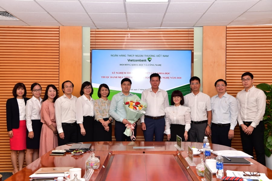 Tham dự buổi nghiệm thu, về phía Hội đồng nghiệm thu, có Tiến sỹ Phạm Mạnh Thắng - Phó Tổng Giám đốc, Phó Chủ tịch Hội đồng Khoa học và Công nghệ Vietcombank - Chủ tịch Hội đồng nghiệm thu; ông Đặng Bình Nguyên - Trưởng ban Tổ chức và Nhân sự, thành viên phản biện 1; bà Lê Thị Huyền Diệu - Trưởng phòng Chính sách Tài chính Kế toán, thành viên phản biện 2, cùng các thành viên khác của Hội đồng và các thành viên của Nhóm nghiên cứu đề tài.