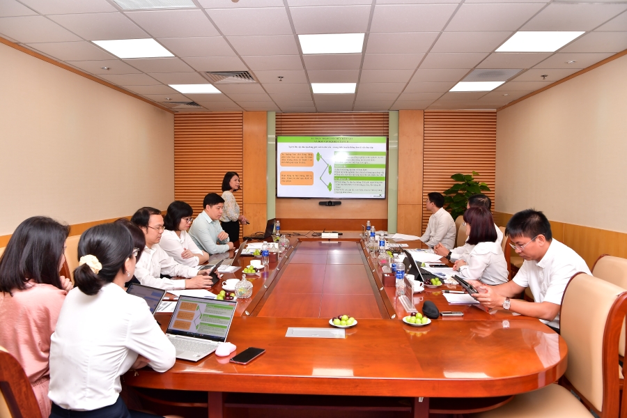 Quang cảnh buổi nghiệm thu đề tài “Giải pháp xây dựng Vietcombank thành tổ chức học tập và sáng tạo”