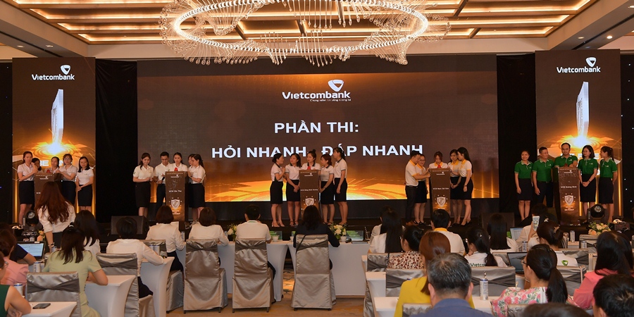 Các đội thi chụp ảnh kỷ niệm cùng Ban lãnh đạo Vietcombank
