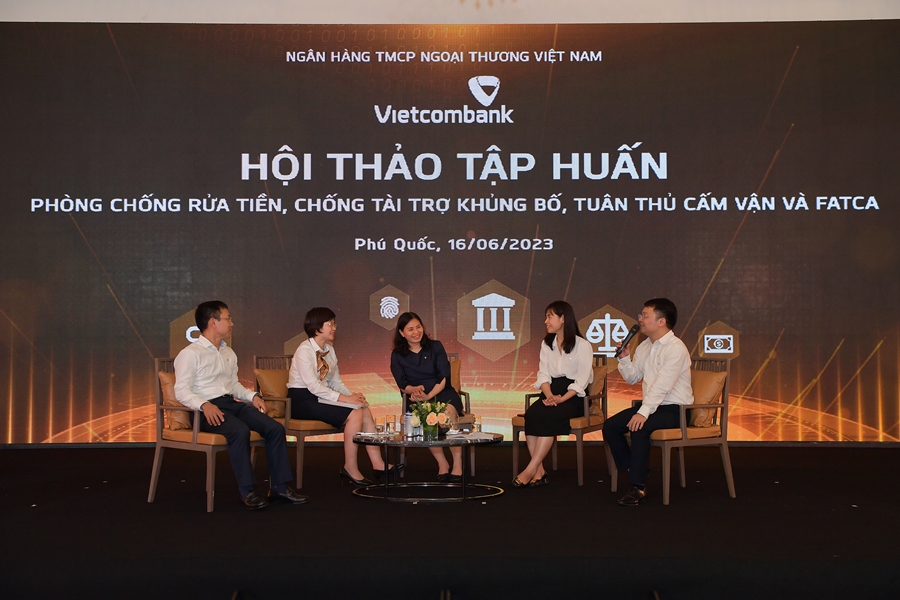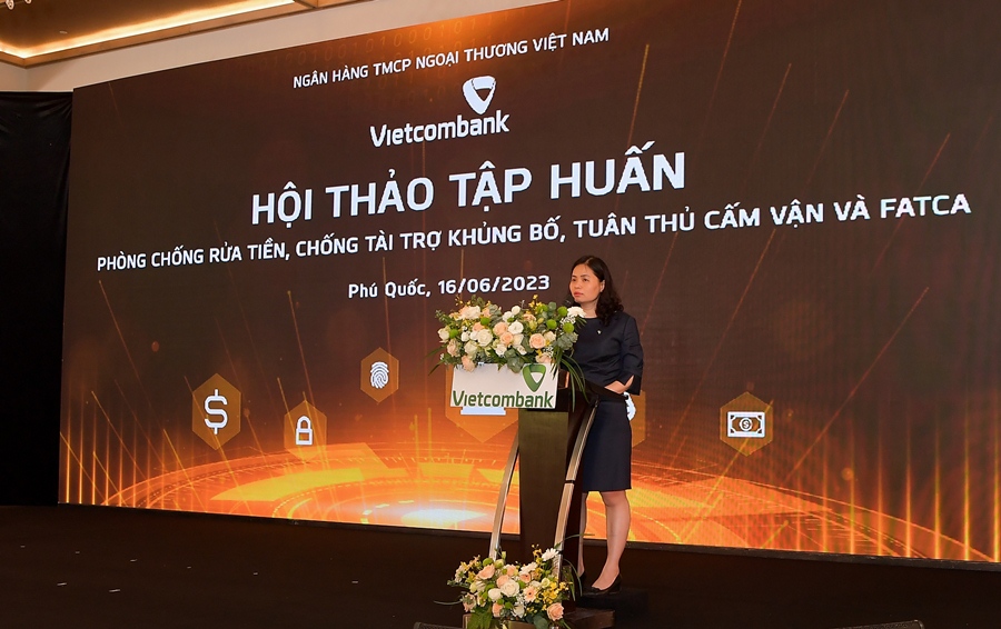 Khai mạc hội thảo, bà Đinh Thị Thái - Phó Tổng Giám đốc Vietcombank đã phát biểu: “Vừa qua, Quốc hội Việt Nam đã ban hành Luật PCRT số 14/2022/QH15, có hiệu lực kể từ ngày 01/03/2023, thay thế luật PCRT cũ từ năm 2012. Ngày 28/4/2023, Chính phủ cũng đã ban hành Nghị định số 19/2023/NĐ-CP quy định chi tiết về luật PCRT, và sắp tới NHNN cũng sẽ ban hành Thông tư hướng dẫn thực hiện. Những văn bản pháp lý này nhằm hoàn thiện quy định pháp luật về phòng, chống rửa tiền đảm bảo thực thi hiệu quả, đáp ứng yêu cầu chung vận hành nền kinh tế và những cam kết của Việt Nam với các tổ chức quốc tế như APG (Nhóm Châu Á - Thái Bình Dương về Phòng chống rửa tiền) và Lực lượng đặc nhiệm tài chính FATF.