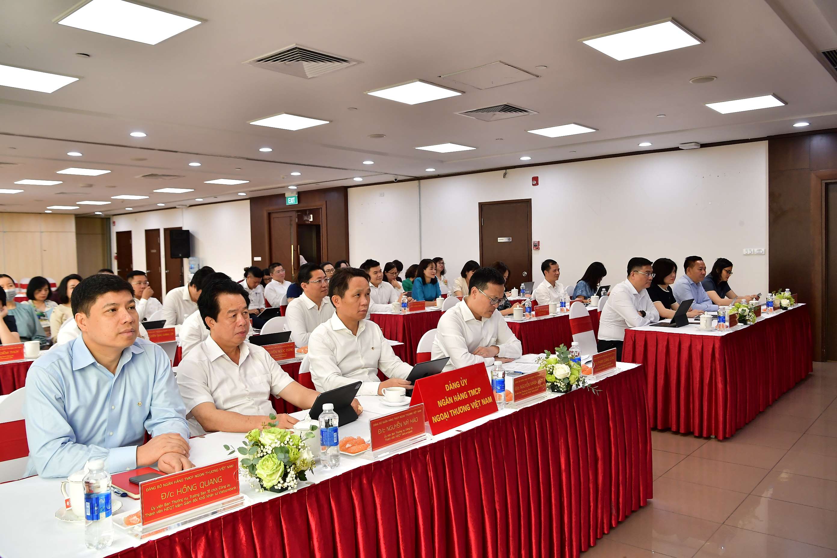 Tham dự Hội nghị tại điểm cầu TSC Vietcombank - 198 Trần Quang Khải, Hà Nội, có: đ/c Phạm Quang Dũng - Ủy viên Ban Thường vụ Đảng ủy Khối DNTW, Bí thư Đảng ủy, Chủ tịch HĐQT; đ/c Nguyễn Thanh Tùng - Phó Bí thư Đảng ủy, Thành viên HĐQT, Tổng giám đốc; các đ/c ủy viên Ban thường vụ Đảng ủy, ủy viên BCH Đảng bộ, thành viên HĐQT, thành viên Ban điều hành, Kế toán trưởng, Trưởng ban Kiểm soát; Bí thư Đoàn thanh niên Vietcombank; đại diện lãnh đạo Văn phòng Đảng ủy và các Ban tham mưu của Đảng ủy Vietcombank; đại diện cấp ủy Đảng bộ bộ phận và các chi bộ trực thuộc. Bên cạnh điểm cầu chính tại TSC còn có các điểm cầu của 126 tổ chức Đảng trực thuộc Đảng bộ Vietcombank.