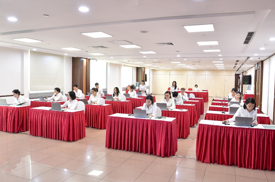 Chương trình thi tay nghề nghiệp vụ quản lý nợ và định giá tài sản bao gồm 01 bài thi trắc nghiệm, chọn 01 đáp án đúng nhất với số lượng 50 câu hỏi. Thời gian làm bài 30 phút, mỗi câu trả lời đúng được 01 điểm và máy tính sẽ tự động chấm điểm. Sau 01 ngày làm việc trong tinh thần khẩn trương, nghiêm túc, chương trình thi tay nghề nghiệp vụ quản lý nợ và định giá tài sản năm 2023 đã kết thúc thành công tốt đẹp.