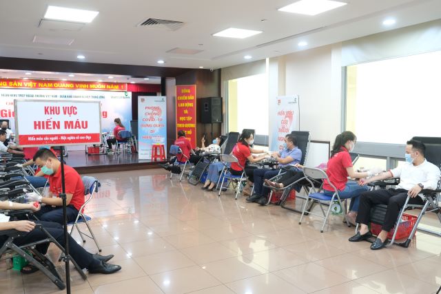 Đoàn viên và người lao động Vietcombank tham gia hiến máu tình nguyện tại chương trình “Giọt hồng yêu thương” năm 2021 do Đoàn Thanh niên tổ chức