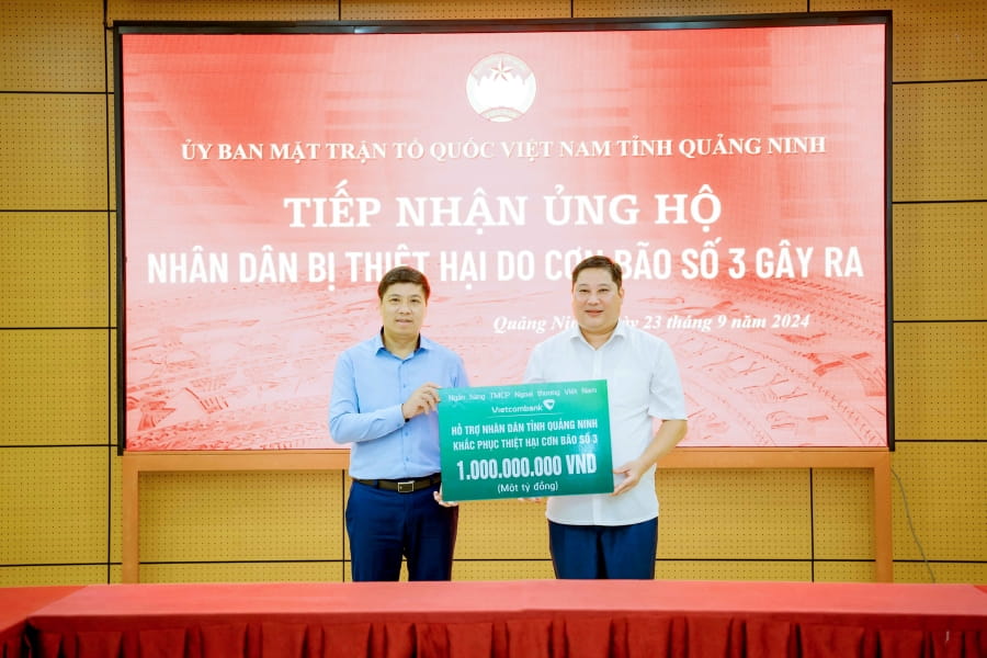 On September 10, during a ceremony organized by the Central Committee of the Vietnam Fatherland Front, Vietcombank donated VND2 billion alongside contributions from the banking sector to support those impacted by Storm No. 3.