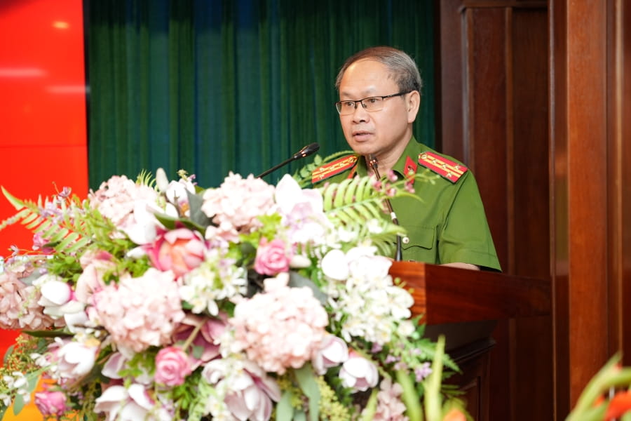 Colonel Ngô Như Cường, deputy director of C06 under the Ministry of Public Security delivered a speech at the launching ceremony
