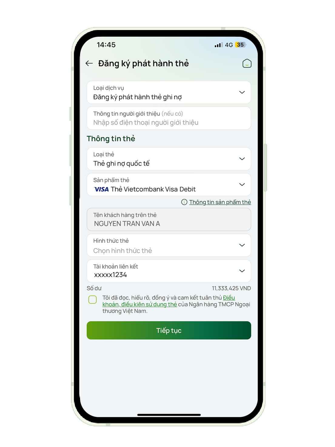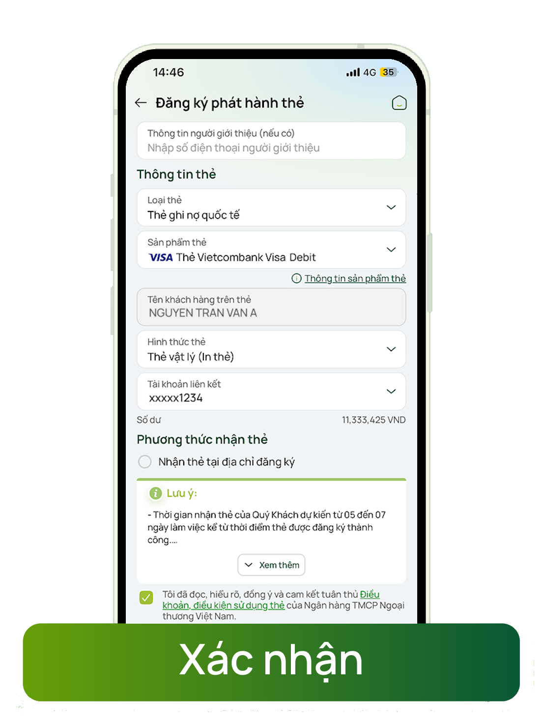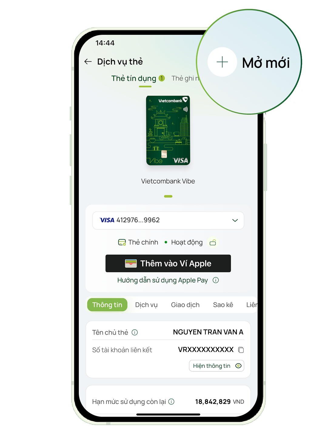 tải app và mở thẻ