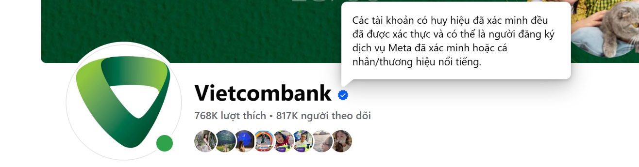 2. Tài khoản mạng xã hội: Facebook: Vietcombank (có dấu tích xanh do Facebook xác nhận)