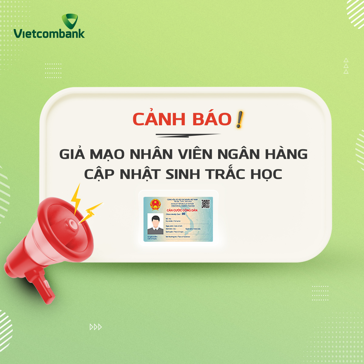 Như đã thông tin rộng rãi đến Quý khách hàng, kể từ ngày 01/07/2024, thực hiện Quyết định số 2345/QĐ-NHNN ngày 18/12/2023 của Ngân hàng Nhà nước Việt Nam, Vietcombank triển khai xác thực bằng sinh trắc học đối với một số loại giao dịch trực tuyến. Trong giai đoạn đầu triển khai, lợi dụng tình huống một số khách hàng gặp khó khăn trong quá trình thao tác cập nhật thông tin sinh trắc học, các đối tượng lừa đảo đã GIẢ DANH NHÂN VIÊN NGÂN HÀNG liên hệ khách hàng đề nghị “hỗ trợ” cài đặt sinh trắc học nhằm chiếm đoạt tài sản, thông tin của khách hàng…