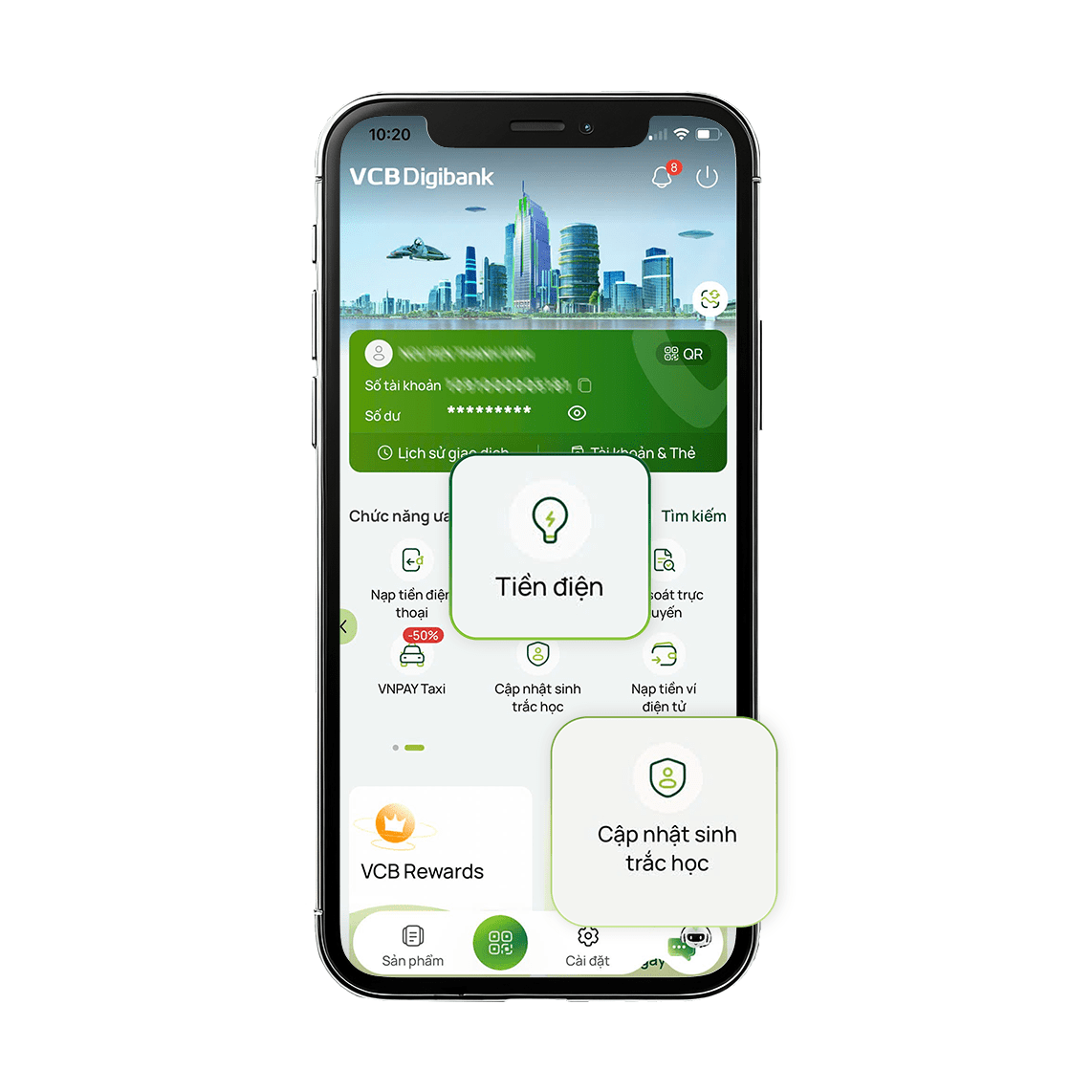 Thanh toán hóa đơn, mua sắm, cập nhật sinh trắc học, bổ sung thông tin cá nhân và tham gia các khảo sát của Vietcombank