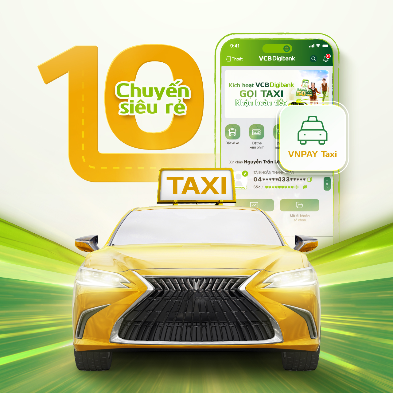 Với mong muốn mang đến cho khách hàng những trải nghiệm gọi taxi tốt nhất, VCB Digibank tung chương trình ưu đãi cực hấp dẫn “VCB DIGIBANK KHAO 10 CHUYẾN TAXI” đi là ưu đãi.
