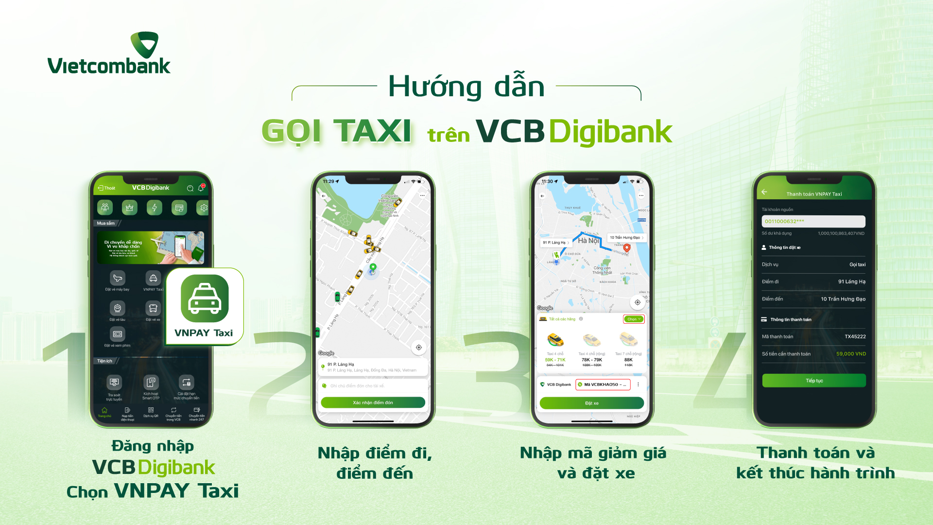 4 bước gọi taxi trên ứng dụng VCB Digibank để hưởng khuyến mại: