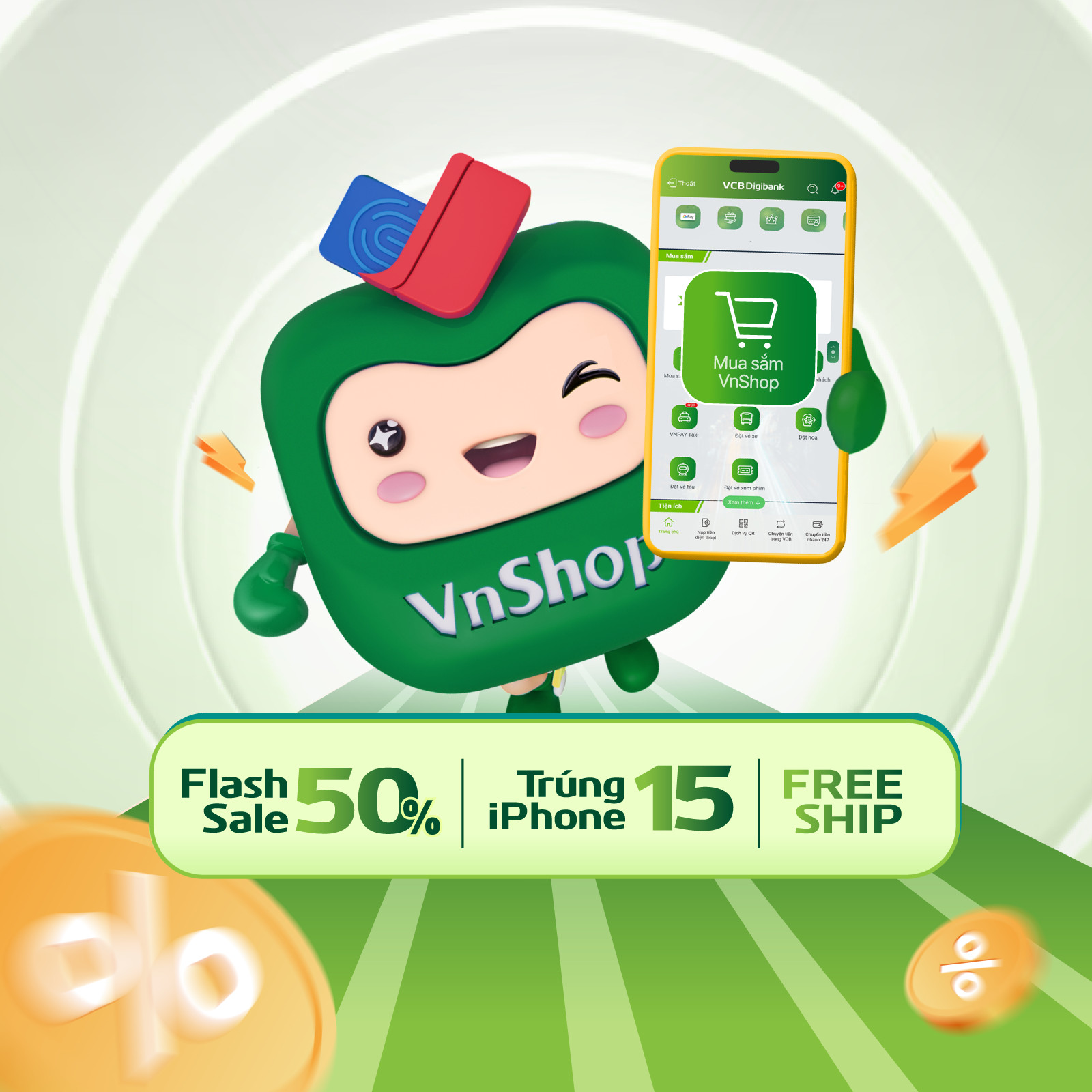 Mở ra cơ hội sở hữu iPhone 15 siêu hot, từ 18/11/2023 tới hết 12/01/2024, Mua sắm VnShop trên VCB Digibank tung ưu đãi “MUA SẮM VNSHOP – TRÚNG IPHONE 15”.