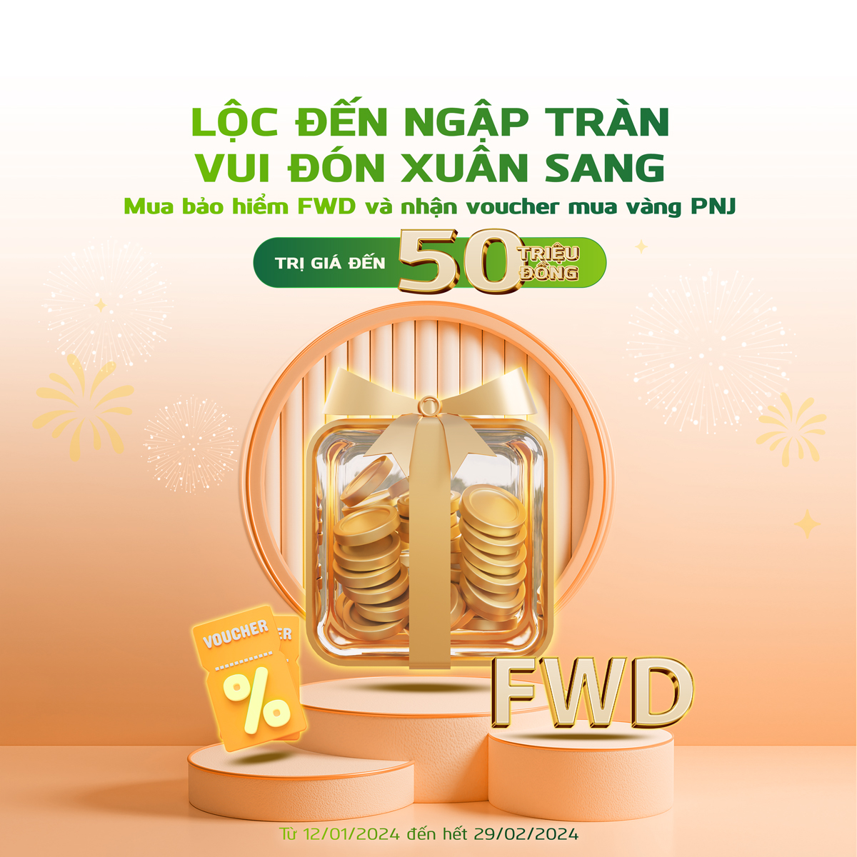 Cùng chào đón năm mới 2024, Vietcombank và FWD Việt Nam trân trọng thông báo triển khai chương trình khuyến mại “Lộc đến ngập tràn – Vui đón xuân sang” với những phần quà đặc biệt hấp dẫn: