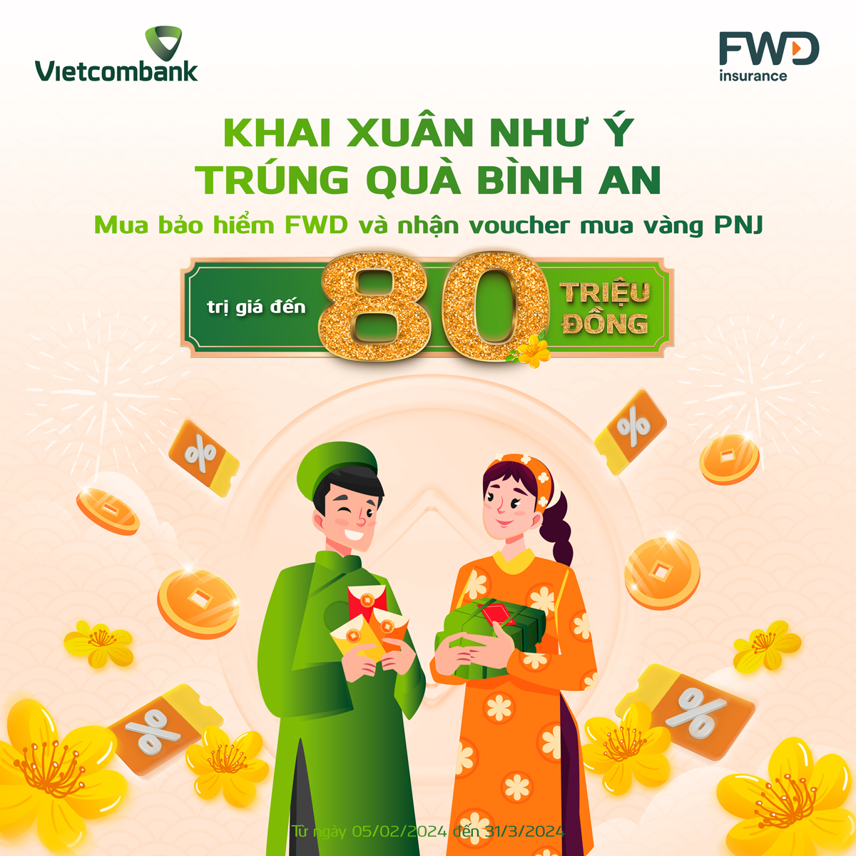 Chào xuân Giáp Thìn, Vietcombank và FWD Việt Nam tưng bừng triển khai chương trình khuyến mại (CTKM) “Khai xuân như ý – Trúng quà bình an”.