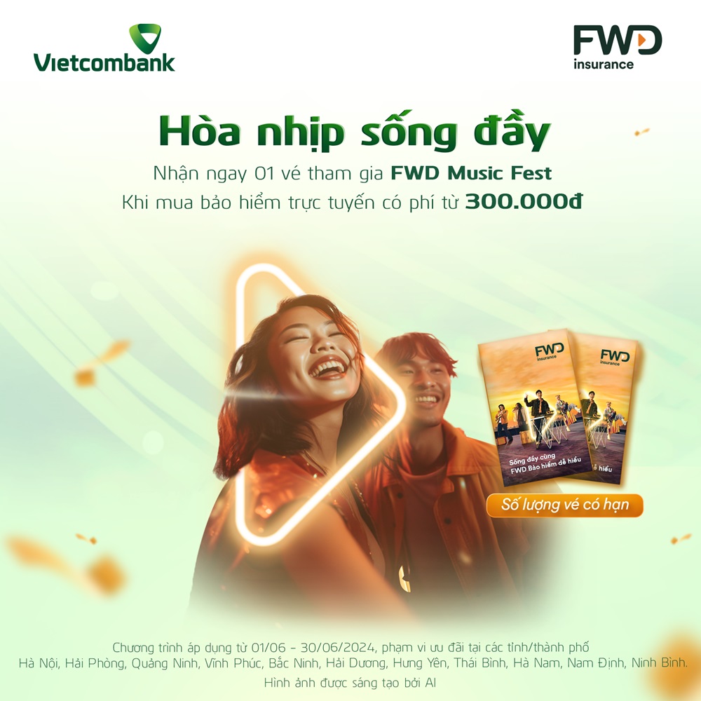 Vietcombank cùng FWD Việt Nam trân trọng giới thiệu tới quý khách chương trình ưu đãi đặc biệt “Hòa nhịp sống đầy cùng FWD”.