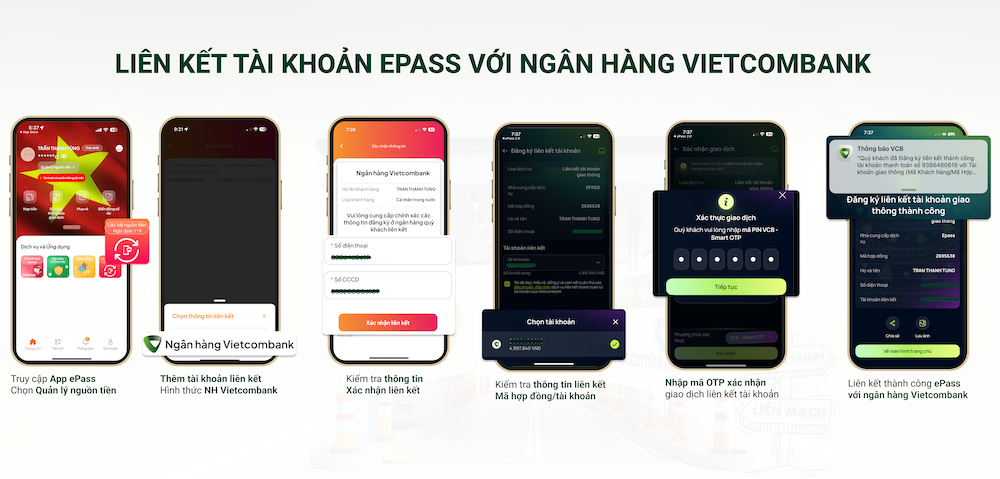 Với hình thức thanh toán mới này, khách hàng chỉ cần một lần đăng ký liên kết tài khoản Vietcombank với ePass thông qua ứng dụng ePass và VCB Digibank. Sau khi liên kết, hệ thống sẽ tự động trừ tiền từ tài khoản ngân hàng mỗi khi phương tiện qua trạm, đồng thời ghi nhận chi tiết giao dịch ngay trong lịch sử tài khoản Vietcombank và trên ứng dụng ePass.
