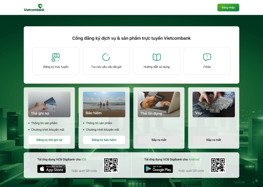 Là một trong những ngân hàng thương mại đầu tiên ở Việt Nam triển khai dịch vụ thẻ, qua 30 năm phát triển, Vietcombank không ngừng đa dạng hóa sản phẩm, phát triển dịch vụ mới, nâng cao chất lượng dịch vụ và ứng dụng công nghệ hiện đại trong lĩnh vực thẻ.