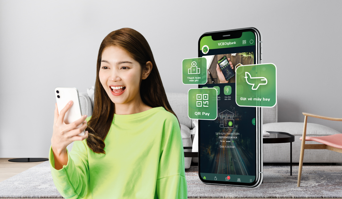 - Thanh toán vé máy bay và thanh toán QR Pay bằng thẻ tín dụng trên ứng dụng VCB Digibank: