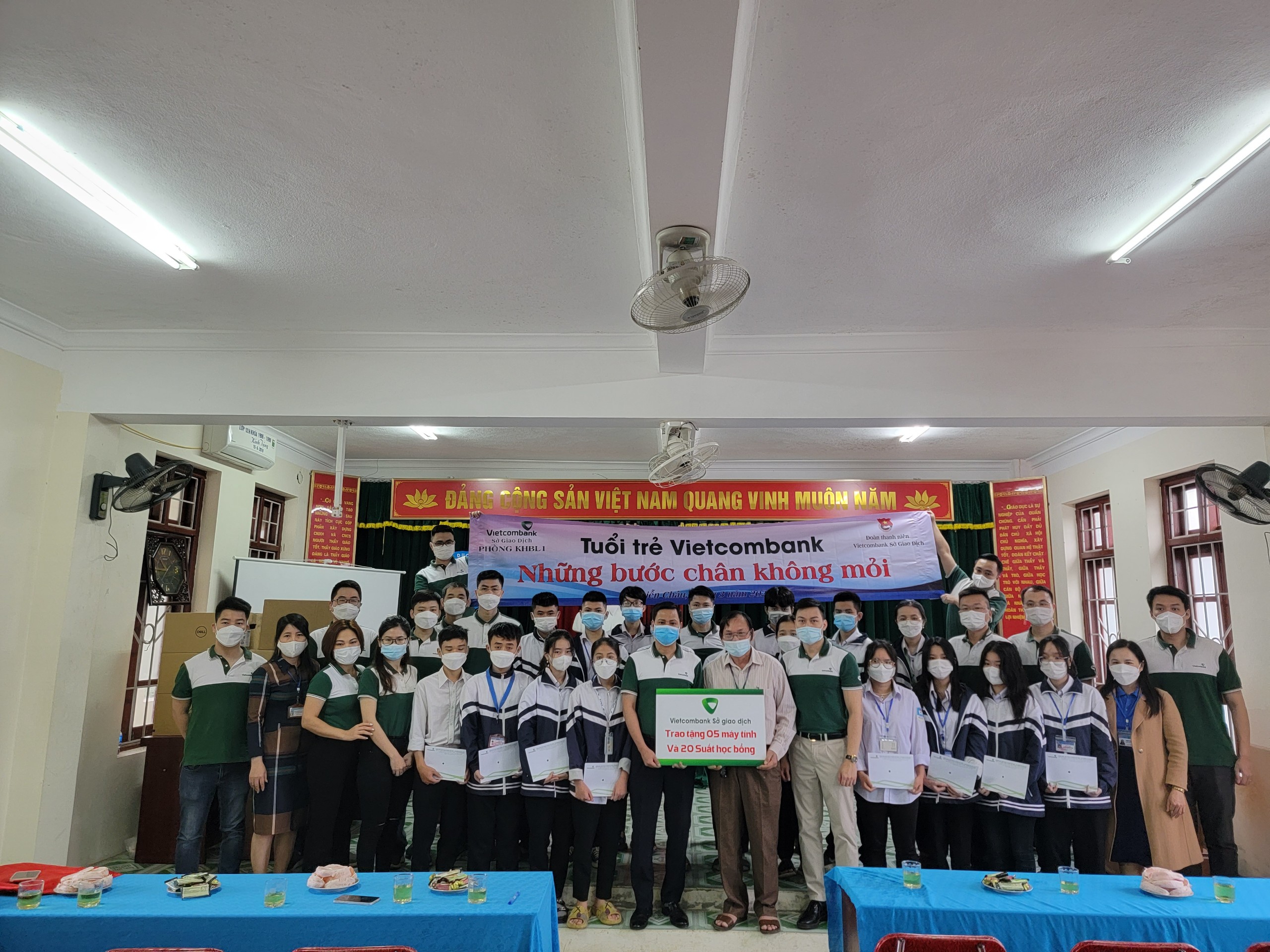 Đoàn Thanh niên Vietcombank Sở giao dịch trao tặng máy tính và học bổng tại trường trung học thuộc huyện Diễn Châu, tỉnh Nghệ An