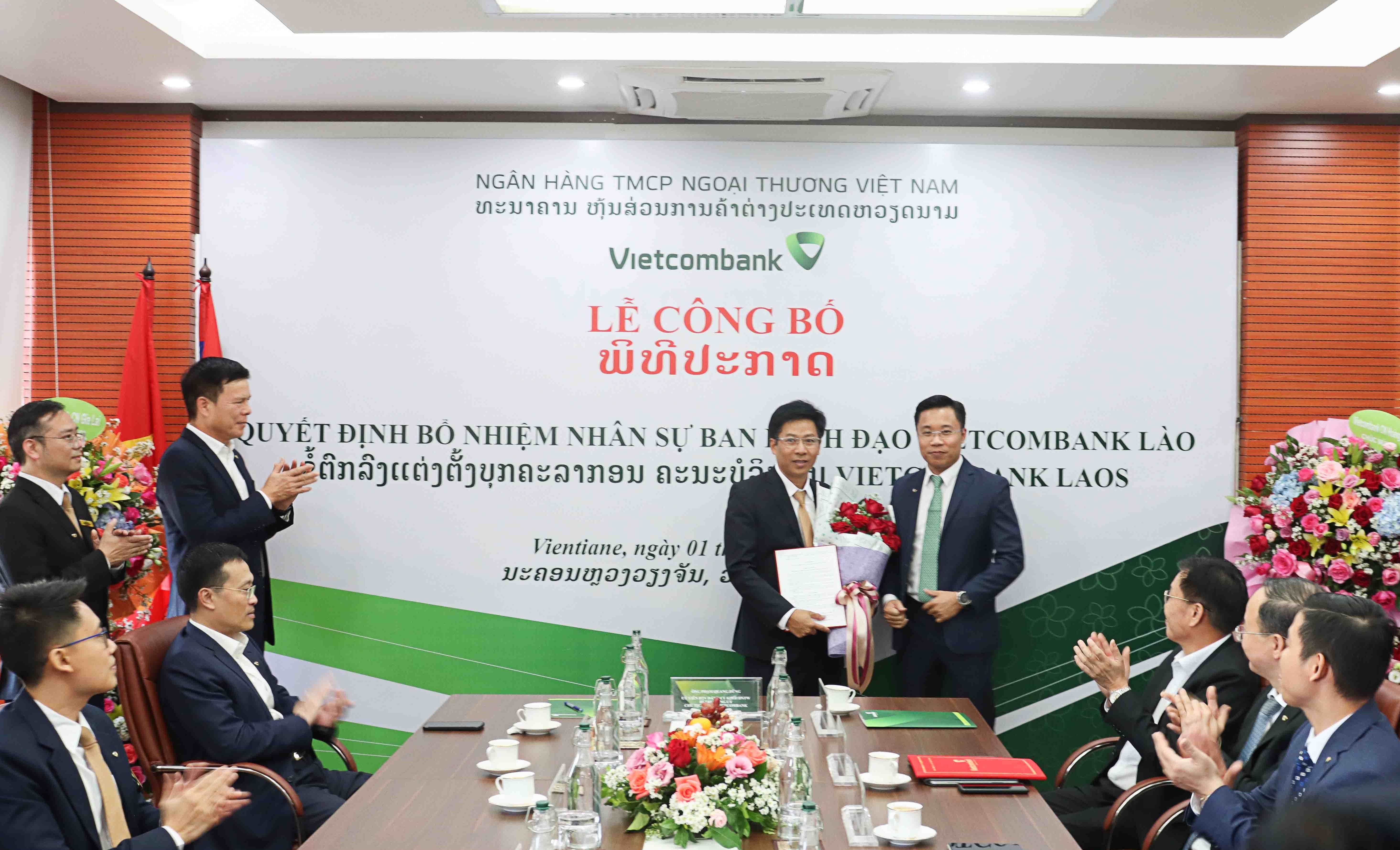 Tại buổi lễ, Vietcombank đã công bố các quyết định của Chủ tịch HĐQT về nhân sự Ban lãnh đạo VCB Lào, cụ thể: Cử ông Lê Quang Vinh - Phó Tổng giám đốc Vietcombank là người đại diện đầu mối phần vốn góp của Vietcombank tại VCB Lào và bổ nhiệm giữ chức vụ Chủ tịch HĐQT VCB Lào kể từ ngày 04/11/2022; Cử biệt phái ông Nguyễn Quang Minh - Phó Giám đốc Vietcombank Hoàng Mai là người đại diện phần vốn góp của Vietcombank tại VCB Lào và bổ nhiệm giữ chức vụ Thành viên HĐQT VCB Lào kể từ ngày 04/11/2022.