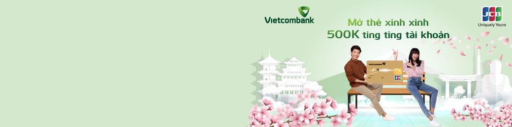 3. Nội dung ưu đãi: Hoàn tiền 500.000 VND cho 1.800 KH đầu tiên phát hành mới và có chi tiêu sớm nhất từ 2 triệu đồng trở lên trong vòng 45 ngày kể từ ngày phát hành thẻ bằng thẻ tín dụng Vietcombank JCB