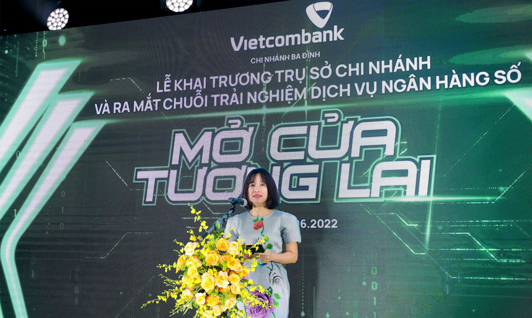 Bà Bùi Thị Ngọc Bích - Giám đốc Vietcombank Ba Đình cho biết: chuỗi trải nghiệm dịch vụ ngân hàng số được Vietcombank triển khai đầu tiên tại trụ sở mới của Chi nhánh Ba Đình chắc chắn sẽ mang đến cho khách hàng những cảm nhận đặc biệt hơn. Đó cũng chính là sự tri ân của Vietcombank gửi đến quý khách hàng đã luôn gắn bó, đồng hành với chúng tôi, đồng thời khẳng định cam kết mạnh mẽ của Vietcombank là không ngừng đổi mới để mang đến cho khách hàng những sản phẩm dịch vụ tiện ích, hoàn hảo nhất, đặc biệt là các dịch vụ ngân hàng số để mở ra cánh cửa tương lai đầy triển vọng.