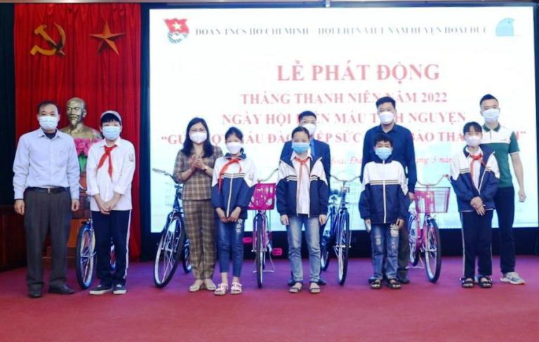 Tại buổi lễ, Vietcombank Bắc Hà Nội và huyện đoàn Hoài Đức đã tặng xe đạp cho 10 học sinh có hoàn cảnh khó khăn trên địa bàn xã Tiền Yên nhưng đã cố gắng, nỗ lực vươn lên trong học tập.