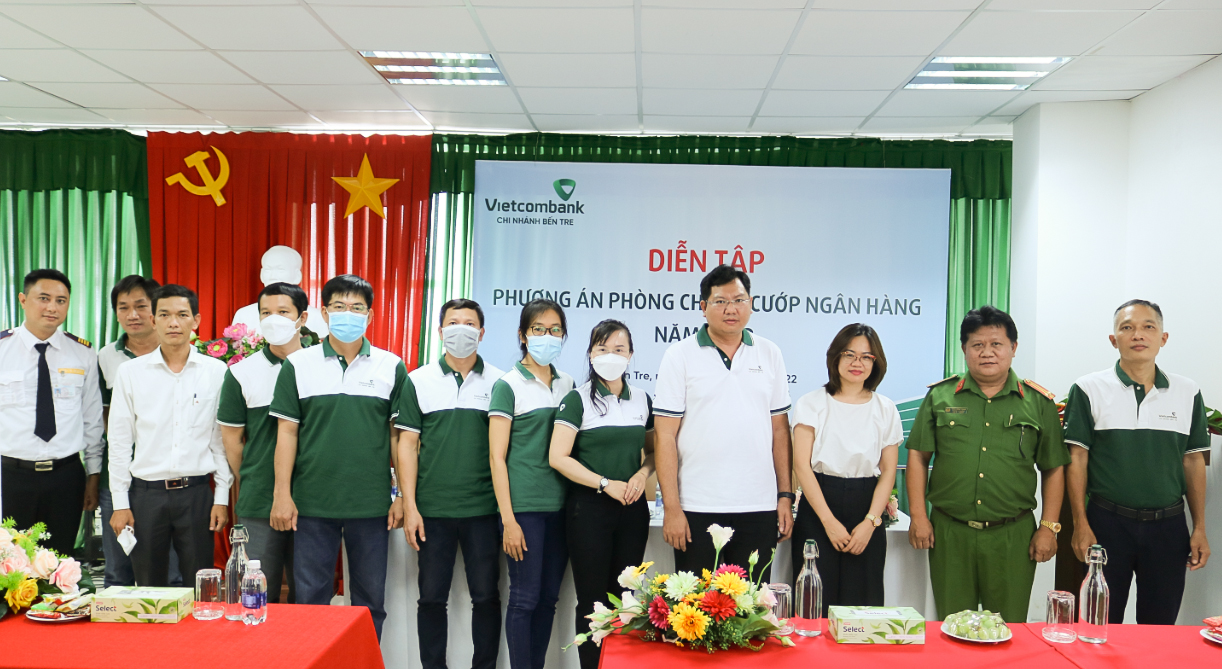 Buổi diễn tập có sự tham dự của ông Trần Văn Thuận - Giám đốc Vietcombank Bến Tre; ông Châu Hồng Thanh - Trưởng công an phường Phú Khương và cán bộ công an khu vực, dân quân khu phố; đại diện lãnh đạo, trưởng các phòng nghiệp vụ và lực lượng cán bộ bảo vệ của công ty cổ phần dịch vụ bảo vệ Sao Vàng làm nhiệm vụ tại Vietcombank Bến Tre, cùng một số lãnh đạo phòng và cán bộ chi nhánh tham dự diễn tập.