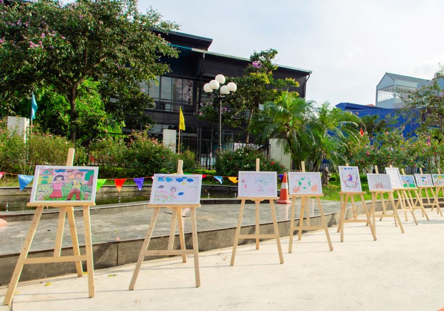 Con đường tranh trong khuôn viên Chi nhánh với các bức tranh do các cháu thiếu nhi vẽ