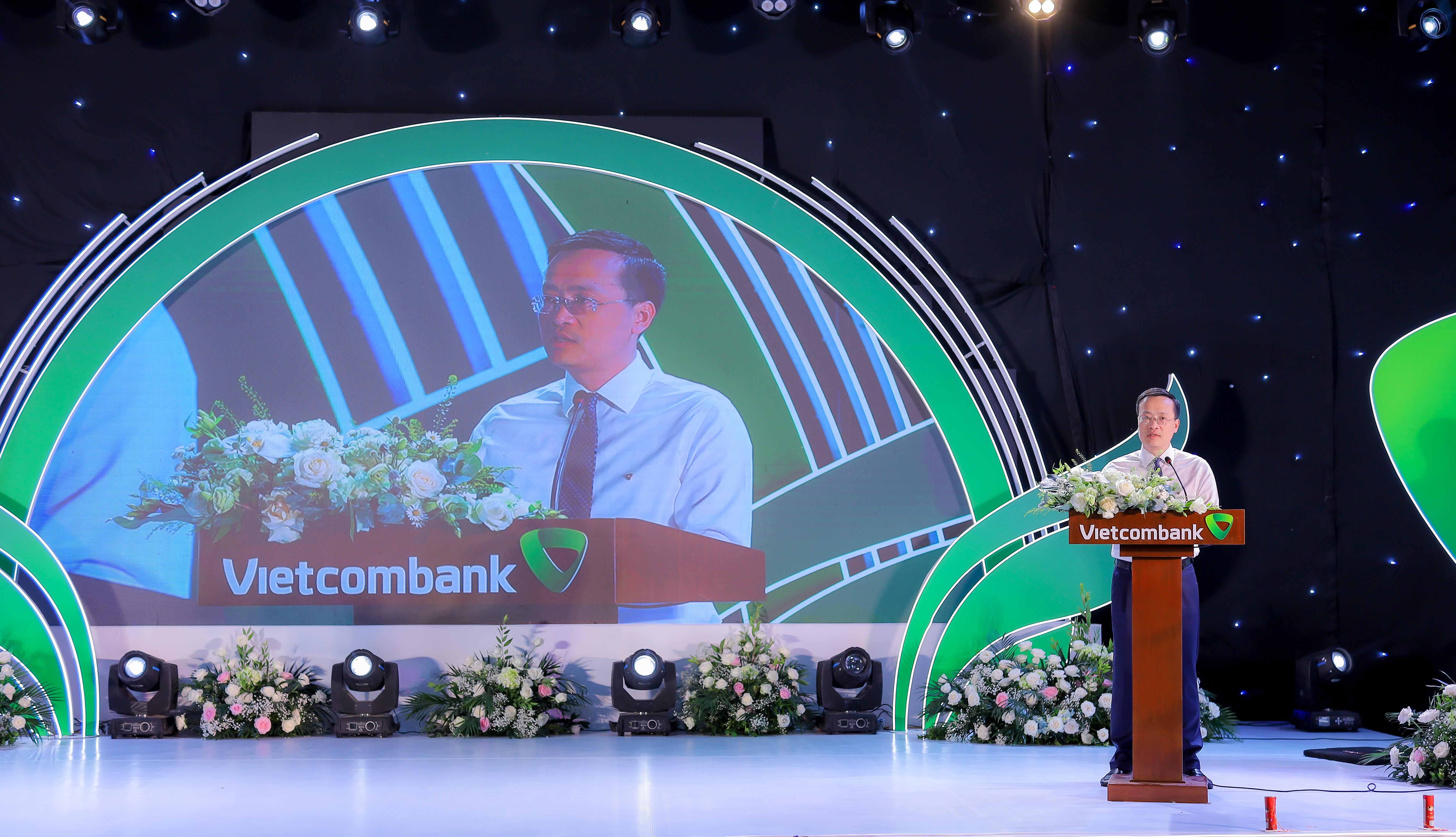Phát biểu tại buổi lễ, ông Phạm Quang Dũng - Ủy viên Ban thường vụ Đảng ủy Khối DNTW, Bí thư Đảng ủy, Chủ tịch HĐQT Vietcombank đã chia sẻ với các đại biểu một số thông tin về thành tựu nổi bật của Vietcombank trong chặng đường 60 năm phát triển, luôn giữ vững vị thế là ngân hàng thương mại số 1 của cả nước, tiên phong triển khai thực hiện có hiệu quả các chủ trương chính sách của Đảng, Chính phủ, Ngân hàng Nhà nước, đóng góp tích cực, quan trọng vào thành tựu chung của ngành ngân hàng và sự phát triển của đất nước, đồng thời cho biết: kết quả hoạt động khả quan của Chi nhánh Vietcombank Nam Định trong những năm qua có nền tảng vững chắc là sự đồng hành, gắn bó của quý khách hàng, quý đối tác; sự quan tâm chỉ đạo, tạo điều kiện thường xuyên của các cấp chính quyền địa phương, NHNN chi nhánh tỉnh Nam Định, và đặc biệt là tinh thần đoàn kết, thống nhất, ý chí, quyết tâm, nỗ lực lao động, sáng tạo của tập thể cán bộ Chi nhánh qua các thời kỳ.
