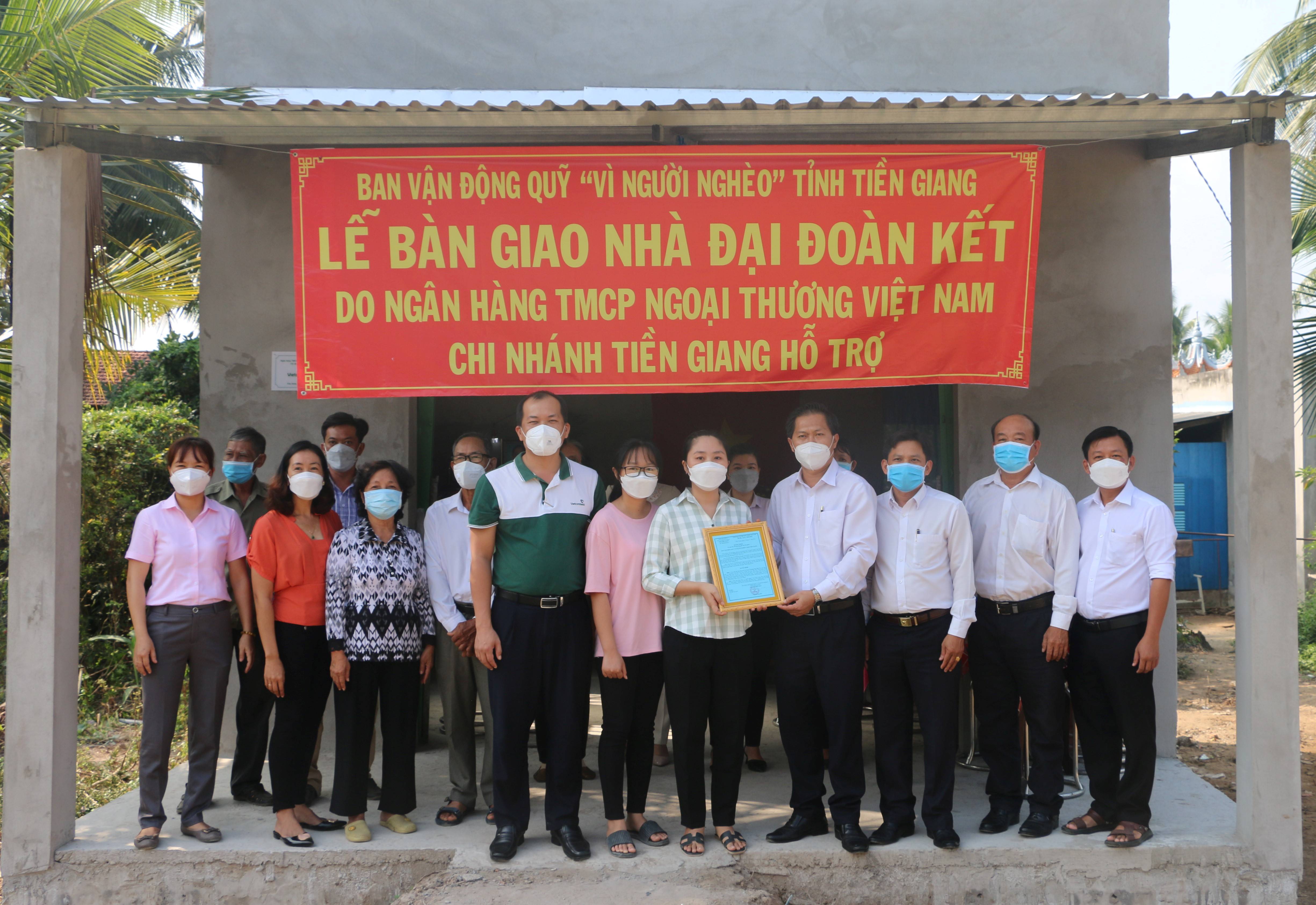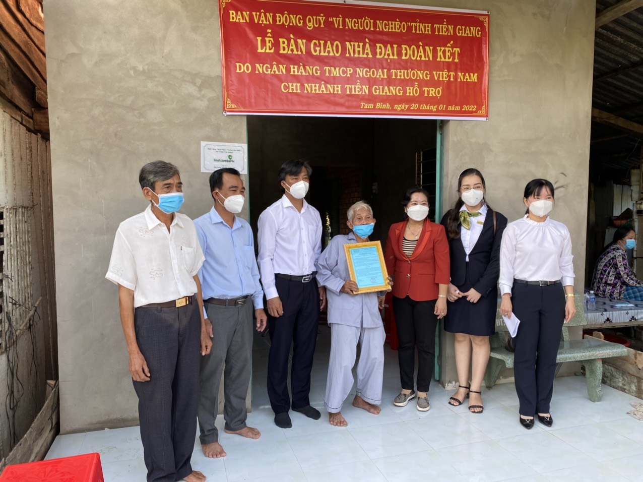 Hàng năm, bên cạnh nhiệm vụ hoạt động kinh doanh, Vietcombank đặc biệt quan tâm đến công tác an sinh xã hội, thể hiện trách nhiệm với cộng đồng. Năm 2021, mặc dù chịu ảnh hưởng của đại dịch COVID-19, Vietcombank Tiền Giang đã ủng hộ chính quyền địa phương kinh phí và trang thiết bị y tế với tổng số tiền 260 triệu đồng để lực lượng tuyến đầu an tâm phòng, chống dịch. Việc trao tặng 20 căn nhà đại đoàn kết góp phần giúp cho các hộ nghèo, cận nghèo trên địa bàn khắc phục khó khăn về nhà ở, ổn định cuộc sống, yên tâm phát triển kinh tế. Càng ý nghĩa hơn khi những căn nhà được hoàn thiện và trao tặng đến tay người dân vào đúng dịp Tết đến, Xuân về, để các gia đình có thể tận hưởng 1 mùa xuân tươi vui, trọn vẹn và ấm áp bên trong ngôi nhà mới./.