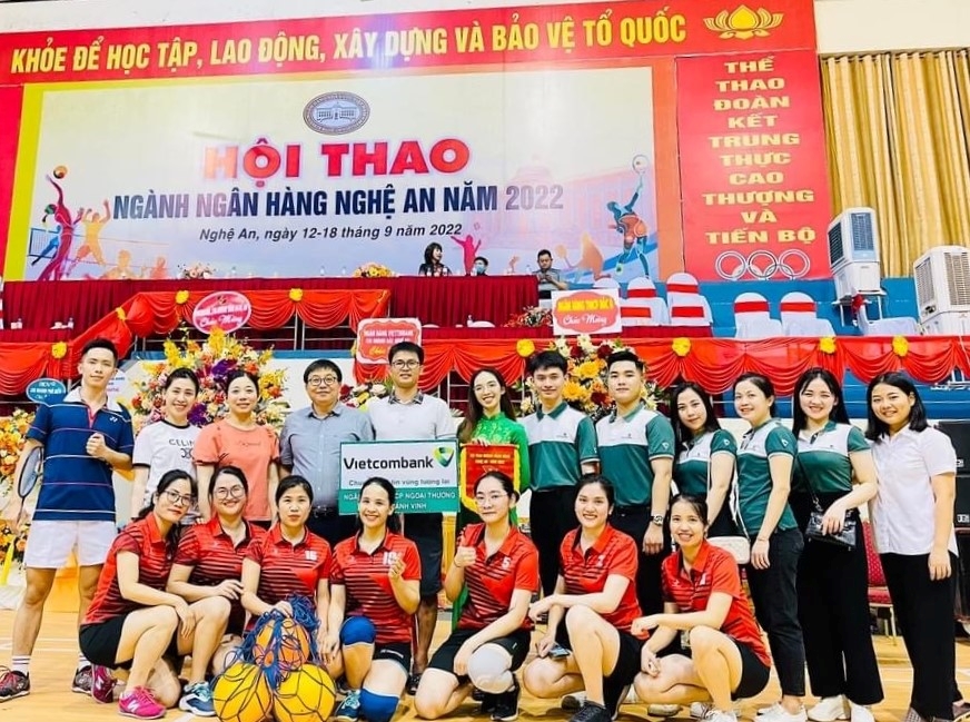 Là một trong 42 đơn vị tham gia Hội thao, Đoàn Vietcombank Vinh đã đạt được những thành tích xuất sắc trên 4 bộ môn (bóng đá nam, bóng chuyền nữ, bóng bàn và cầu lông) với 9 nội dung thi đấu: Giải Nhì toàn đoàn; Huy chương Vàng bóng bàn đơn nữ; Huy chương Vàng bóng bàn đôi nữ; Huy chương Đồng bóng đá nam; Huy chương Bạc bóng bàn đôi nam nữ. Bộ môn cầu lông đôi nam, đôi nam nữ tuy không giành được Huy chương nhưng đều tiến vào vòng bán kết.