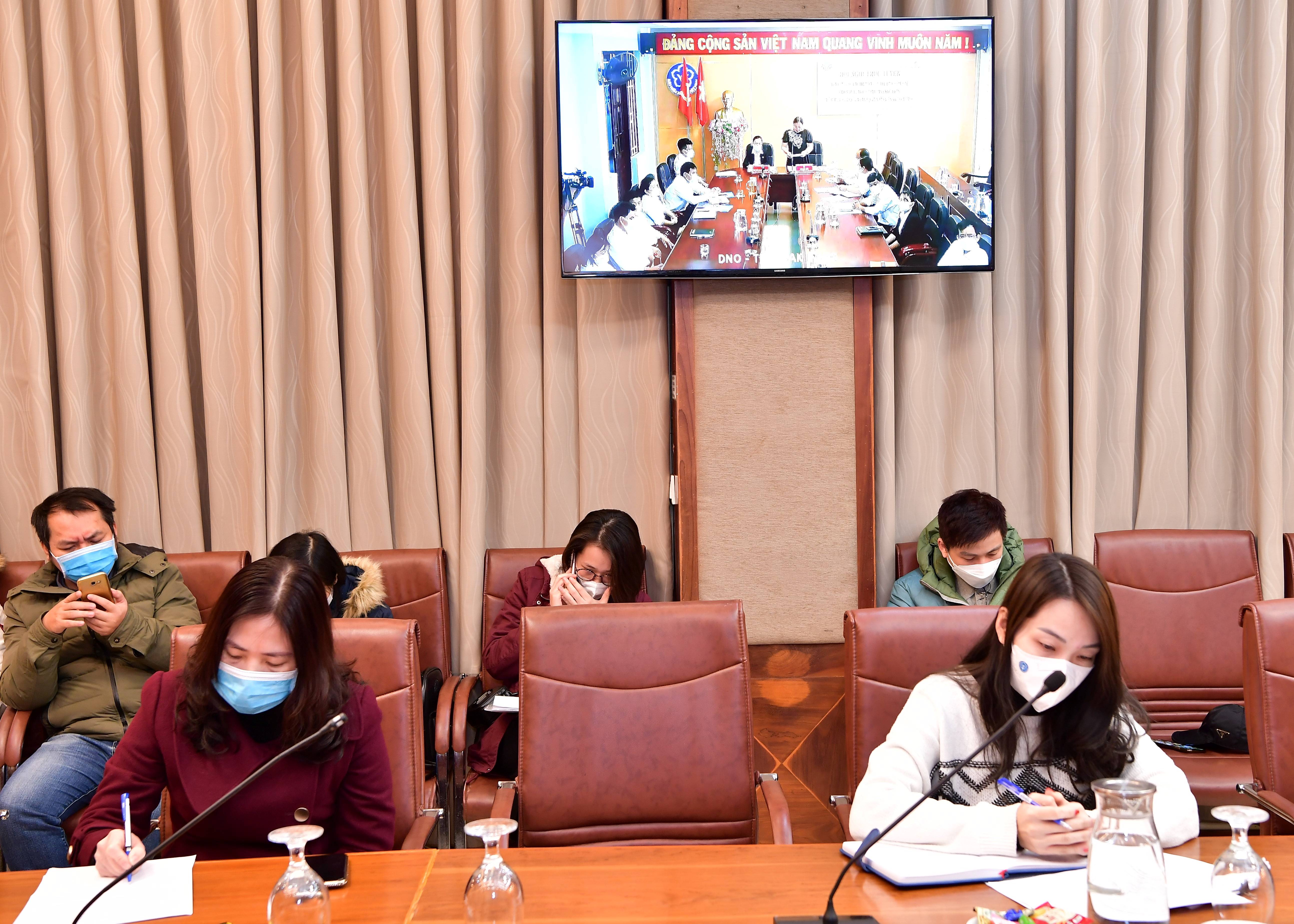 Một trong những hình ảnh đại diện của lãnh đạo BHXH các đơn vị phát biểu tại Hội nghị - Hình ảnh kết nối trực tuyến với Hội nghị nhìn từ điểm cầu tại BHXH Việt Nam, số 7 Tràng Thi, Hoàn Kiếm, Hà Nội