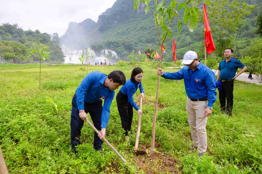 Ra quân trồng cây tại khu vực thác Bản Giốc