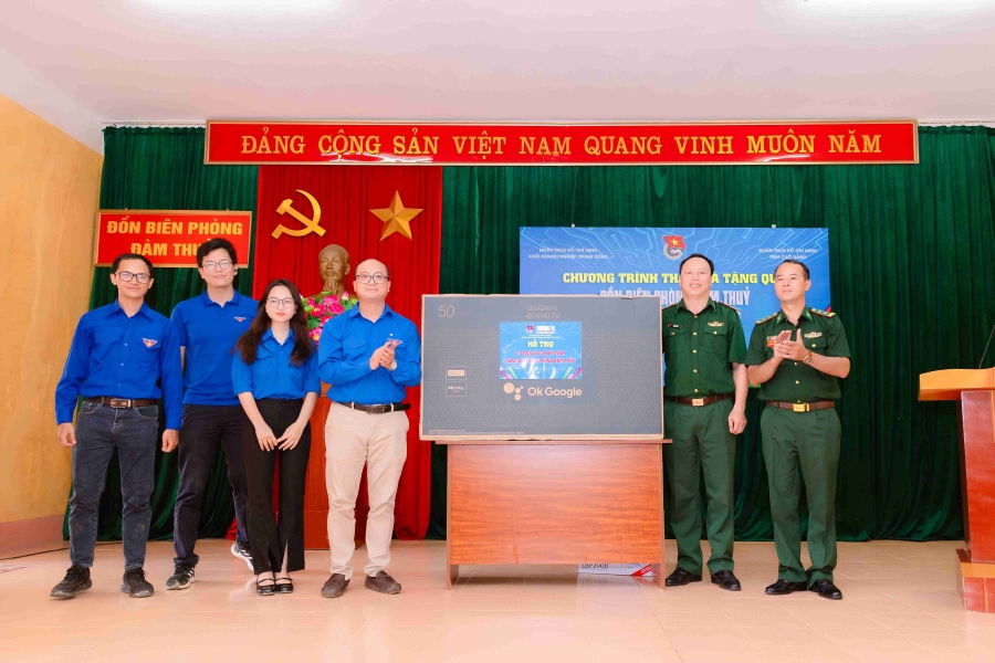 Trong khuôn khổ chương trình, đoàn công tác di chuyển đến Đồn Biên phòng Đàm Thủy tổ chức chương trình thăm, tặng quà nhằm chia sẻ với những khó khăn của cán bộ, chiến sỹ nơi biên cương còn nhiều khó khăn, thiếu thốn về cơ sở vật chất và động viên tinh thần trong việc tiếp tục thực hiện nhiệm vụ mà Đảng, Nhà nước và quân đội giao phó. Trong đó, Đoàn Thanh niên Vietcombank trân trọng trao tặng các đồng chí cán bộ Đồn Biên phòng Đàm Thủy phần quà là 1 Tivi LCD 50 inch và 1 bộ máy tính để bàn nhằm phục vụ quá trình công tác và đời sống sinh hoạt của các cán bộ chiến sỹ nơi đây.