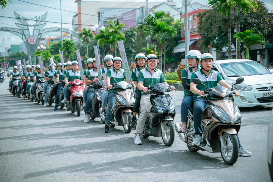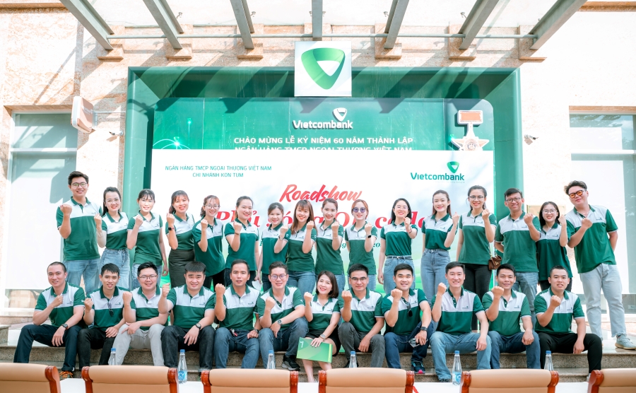 Đoàn roadshow diễu hành qua trụ sở Vietcombank Kon Tum