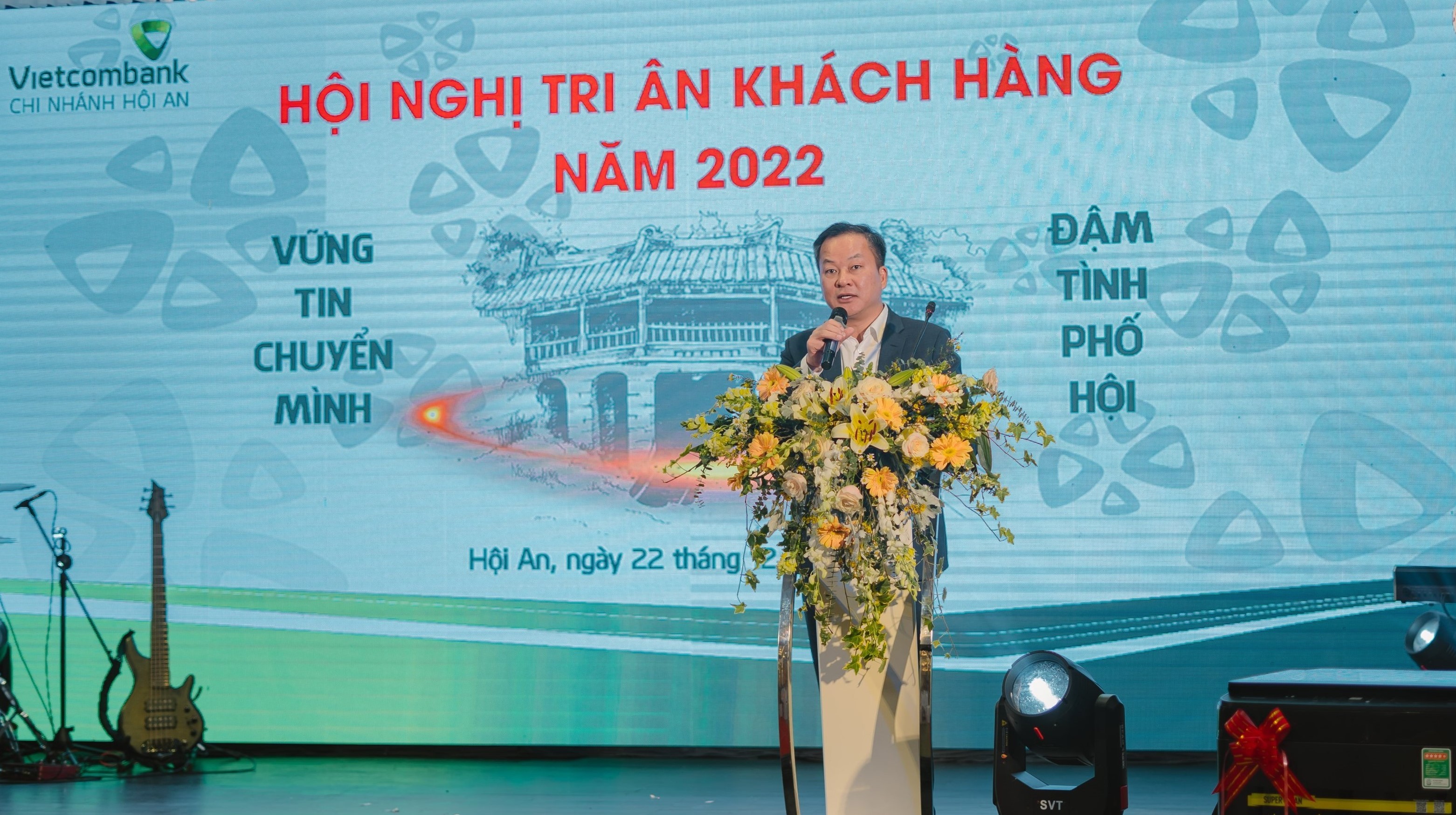 Ông Nguyễn Việt Cường - Phó Tổng Giám đốc Vietcombank phát biểu tại hội nghị tri ân khách hàng Vietcombank Hội An