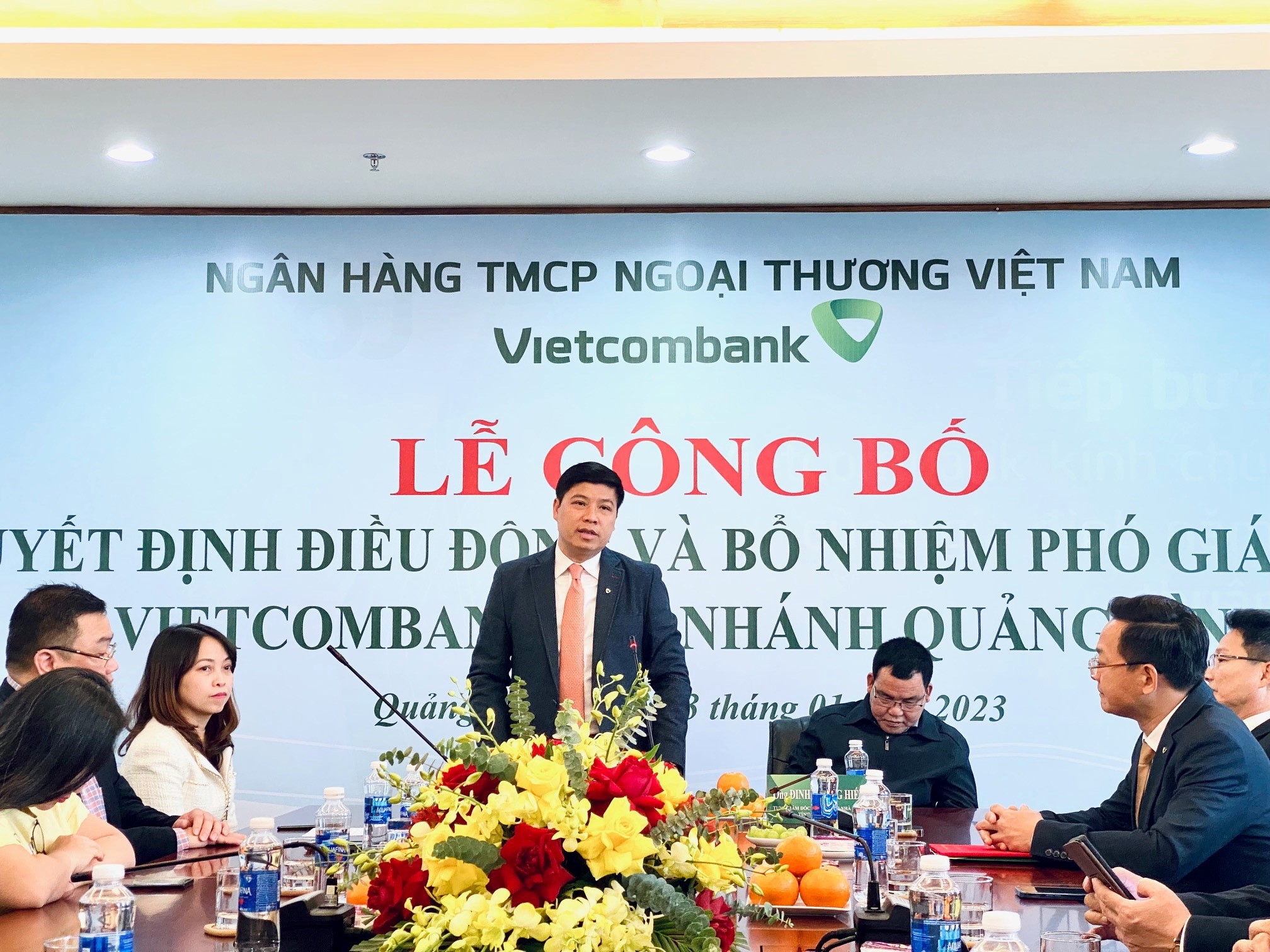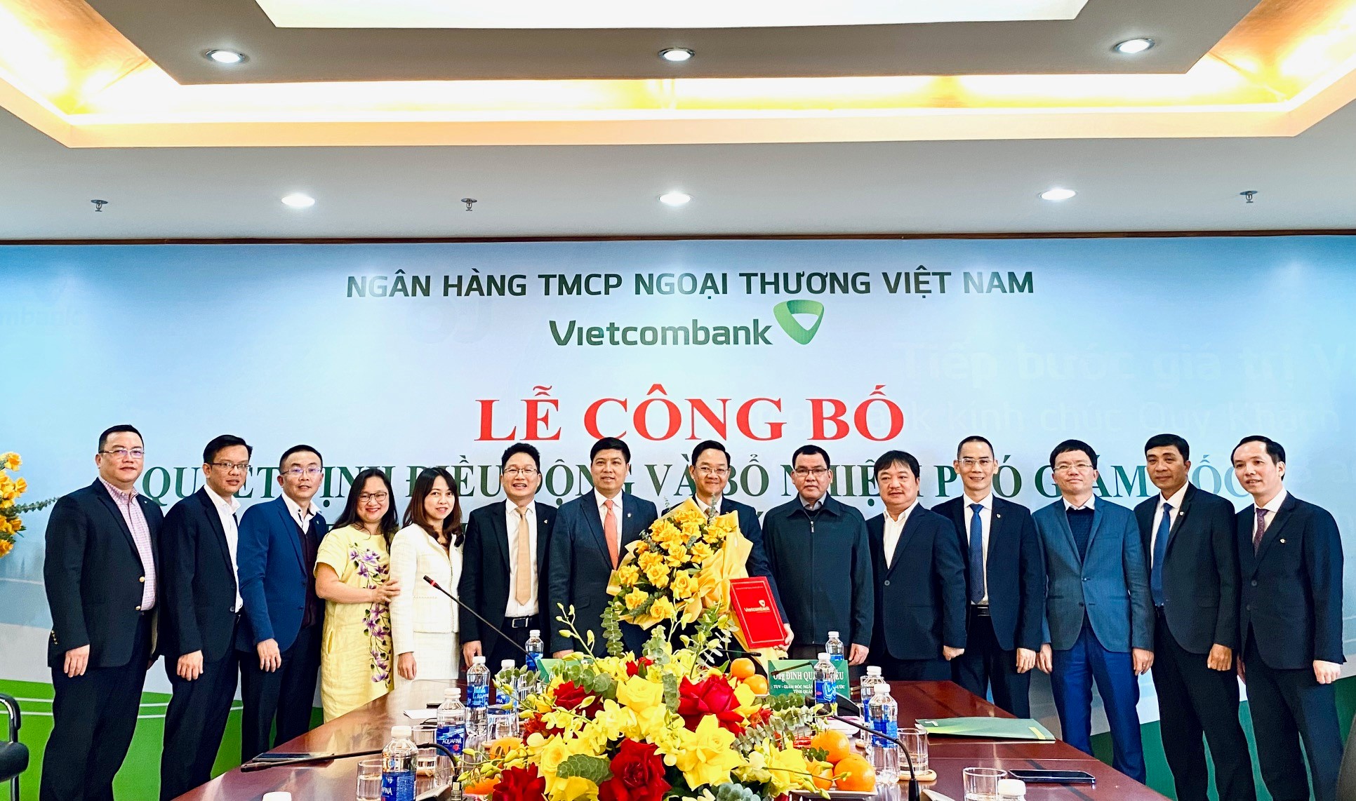 Đại diện Ban lãnh đạo, Ban Giám đốc Vietcombank Quảng Bình và đại diện một số chi nhánh trong khu vực chụp ảnh lưu niệm cùng tân Phó Giám đốc Vietcombank Quảng Bình