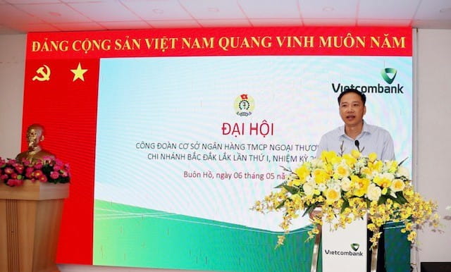 Tham dự Đại hội có đ/c Lê Văn Lương - Trưởng đại diện Công đoàn Ngân hàng Việt Nam tại Đắk Lắk, Phó Giám đốc NHNN chi nhánh tỉnh Đắk Lắk; đ/c Nguyễn Lê Minh Thành - Bí thư Chi bộ, Giám đốc Vietcombank Bắc Đắk Lắk; đ/c Nguyễn Đình Giáng Hương - Phó Bí thư Chi bộ, Phó Giám đốc, Chủ tịch CĐCS Vietcombank Bắc Đắk Lắk cùng toàn thể đoàn viên công đoàn Vietcombank Bắc Đắk Lắk.