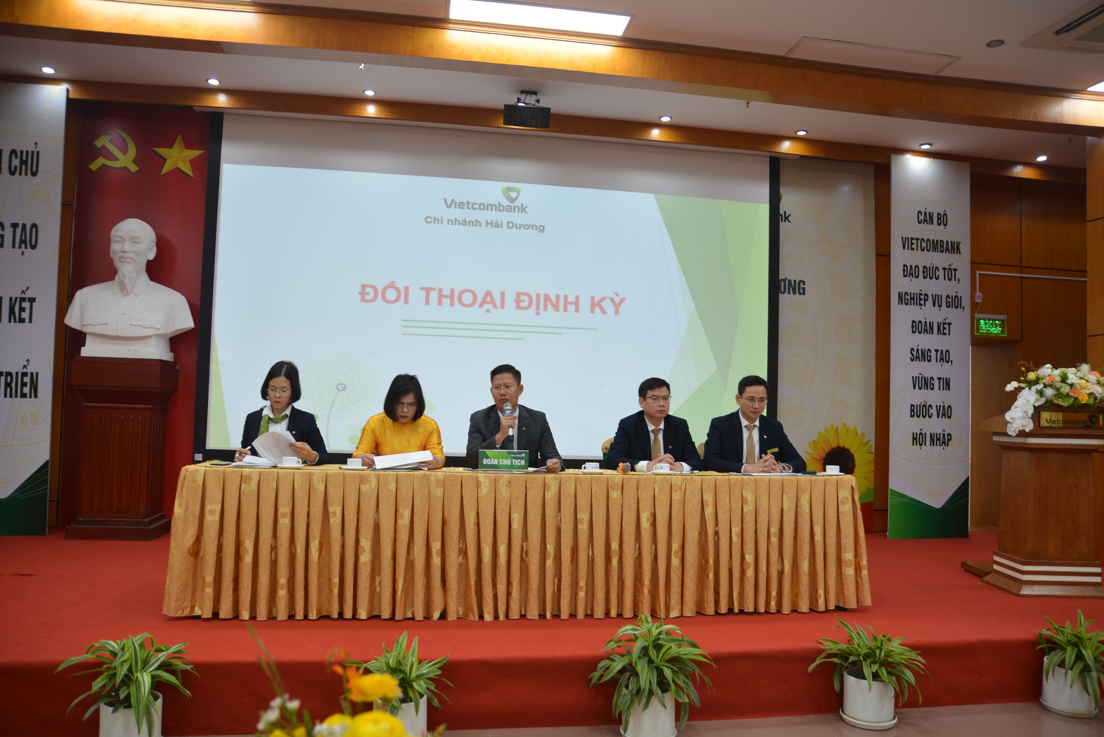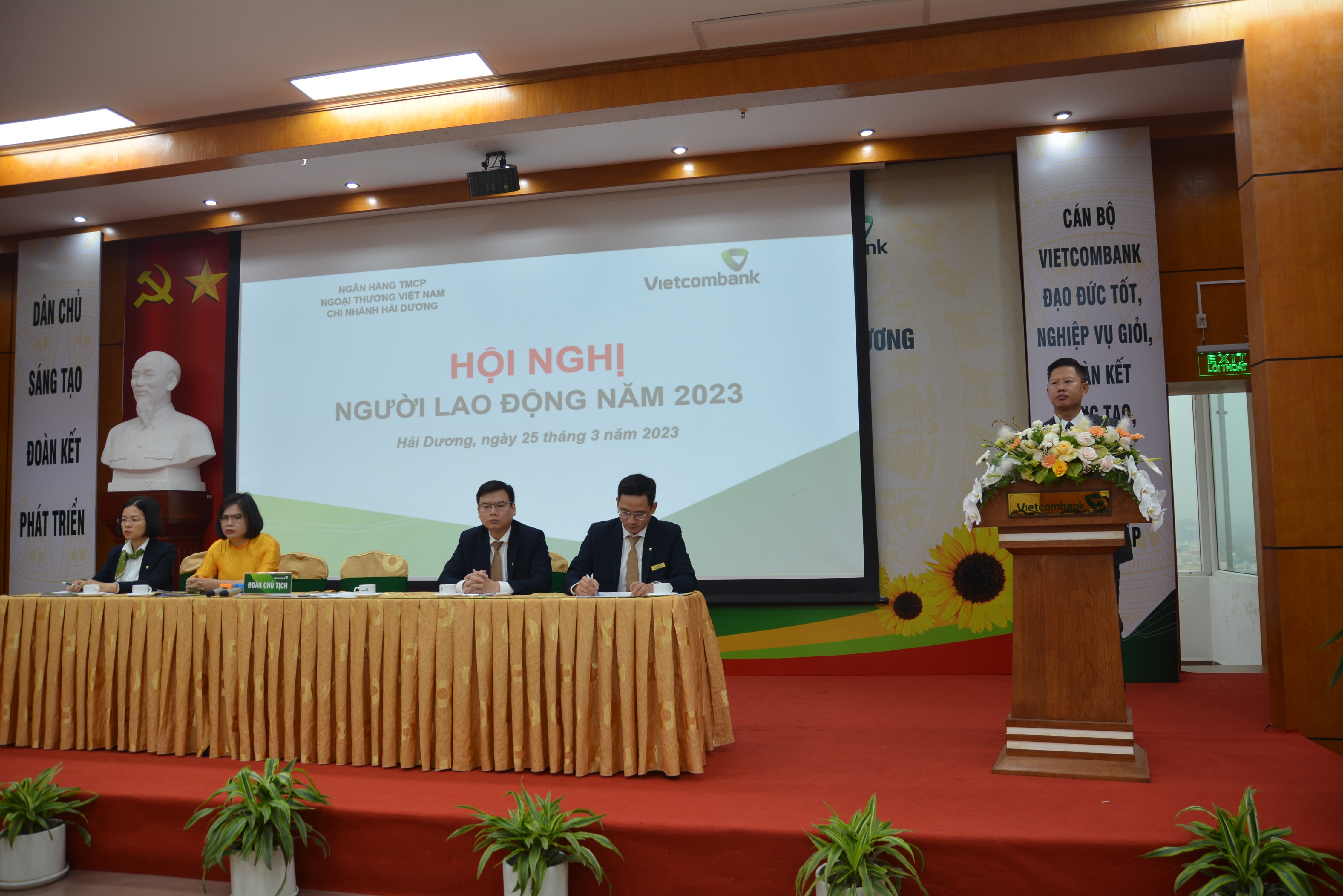 Trong những năm qua, Chi nhánh đã luôn thực hiện tốt các chế độ chính sách, chế độ đãi ngộ với người lao động, tạo niềm tin, sự gắn bó của người lao động đối với Vietcombank, đồng thời nâng cao ý chí phấn đấu, sự sáng tạo của cán bộ góp phần nâng cao năng suất lao động, tăng thu nhập. Hội nghị năm nay, Ban giám đốc Vietcombank Hải Dương cam kết sẽ tiếp tục đảm bảo và gia tăng lợi ích cho người lao động, phấn đấu thu nhập năm sau cao hơn năm trước và luôn ở mức cao so với mức thu nhập bình quân của địa bàn.