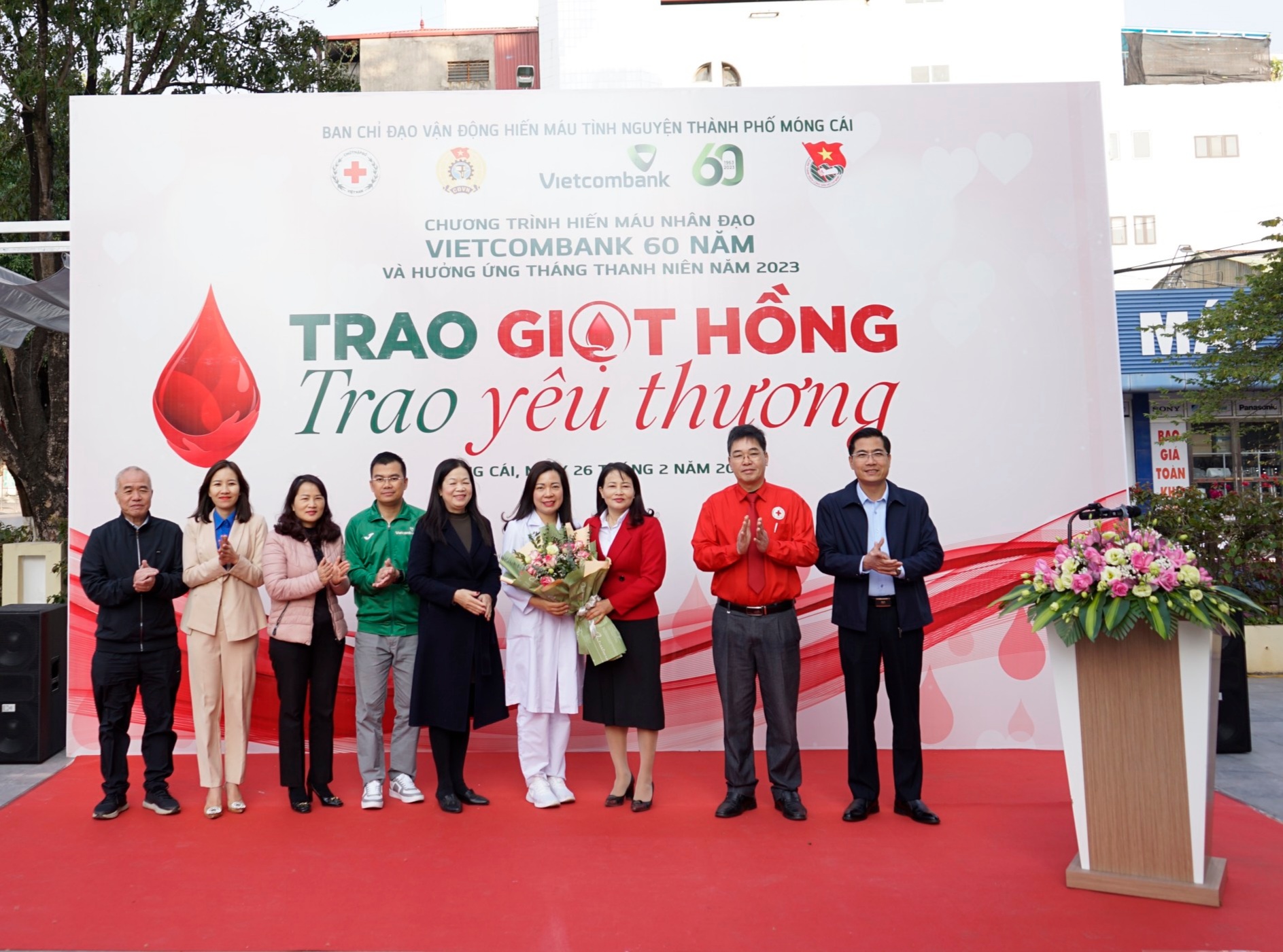 Tham dự chương trình có đồng chí Nguyễn Thu Hương - Phó Chủ tịch UBND thành phố Móng Cái; đồng chí Đặng Ngọc Hùng - Chủ tịch CĐCS, Phó Giám đốc Vietcombank Móng Cái; lãnh đạo các cơ quan ban ngành, xã phường trên địa bàn thành phố, các khách hàng của Vietcombank Móng Cái cùng các tình nguyện viên tham gia hiến máu.