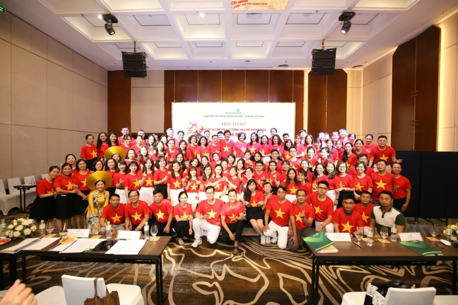 Tập thể cán bộ nhân viên Vietcombank Sài Thành chụp ảnh lưu niệm sau hội thảo