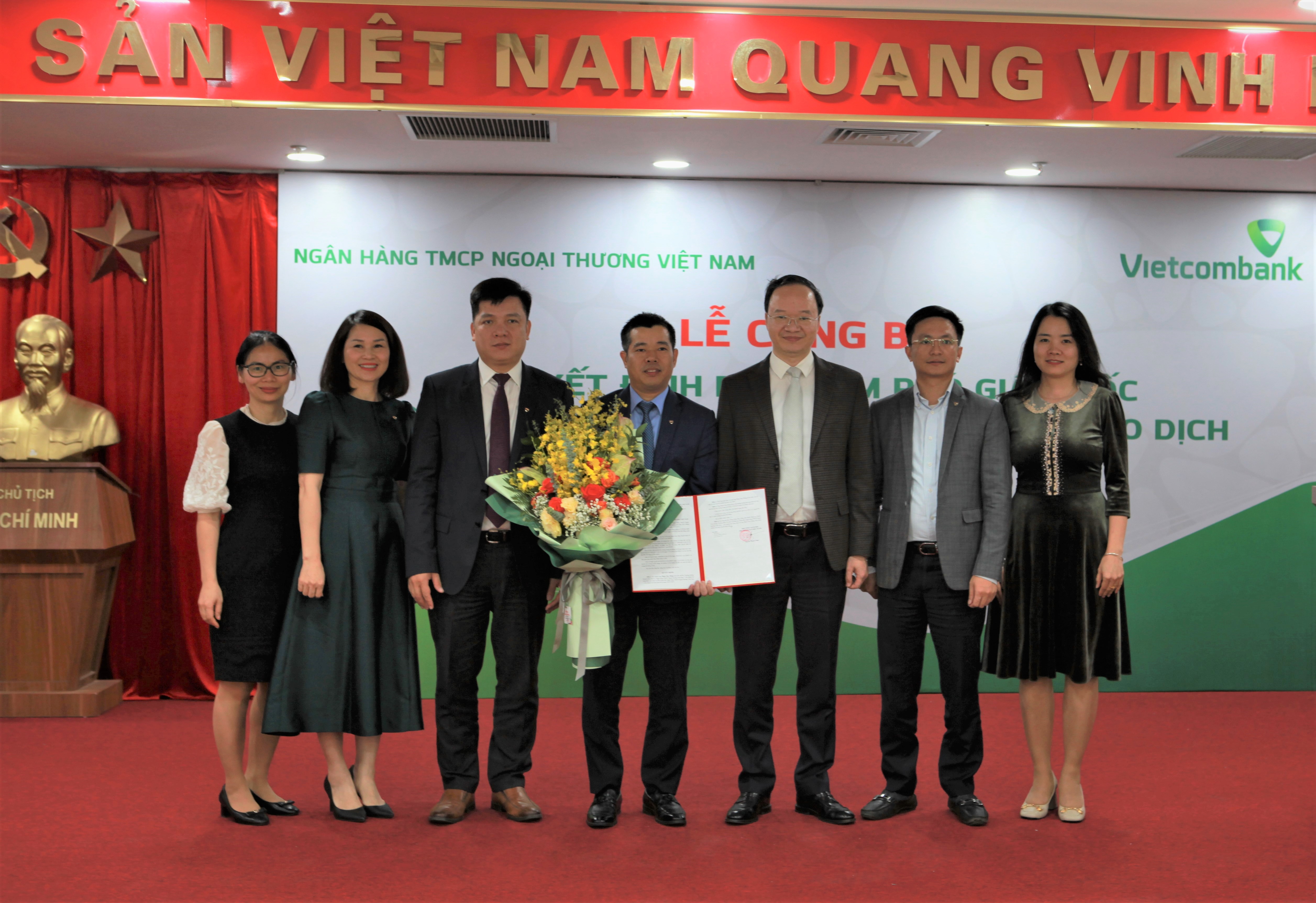 Ban lãnh đạo Vietcombank cùng Ban Giám đốc Vietcombank Sở giao dịch chúc mừng tân Phó Giám đốc Sở giao dịch