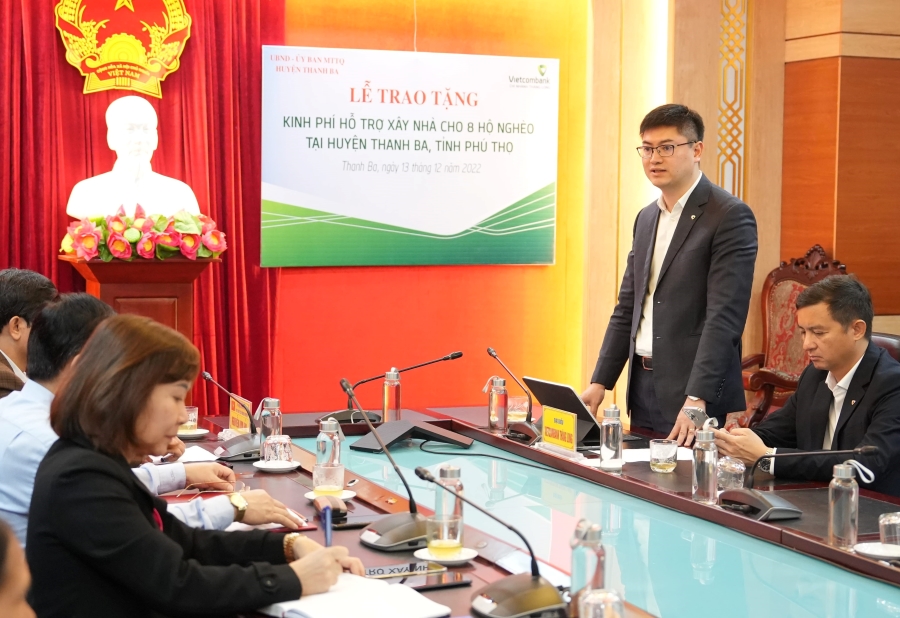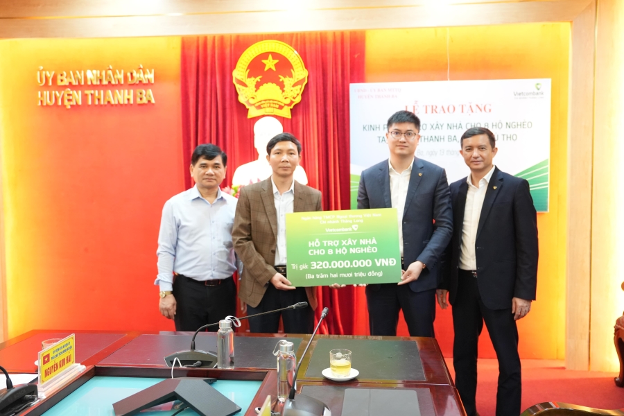 Vietcombank Thăng Long phối hợp với UB MTTQ huyện Thanh Ba, tỉnh Phú Thọ tổ chức buổi lễ trao tặng kinh phí hỗ trợ xây nhà cho 8 hộ gia đình có hoàn cảnh đặc biệt khó khăn trên địa bàn huyện Thanh Ba