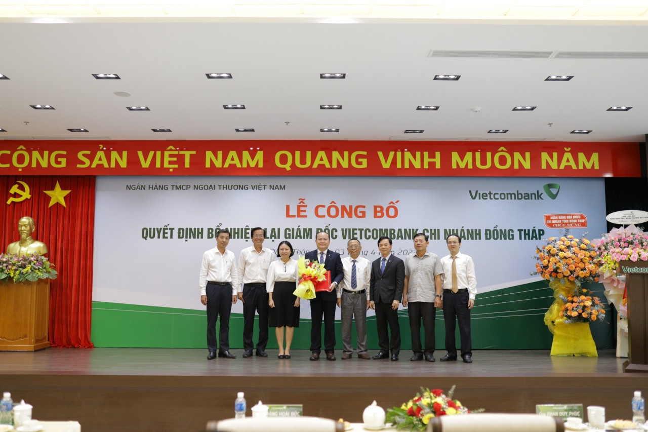 Tại buổi lễ, đại diện Ban Tổ chức và Nhân sự Vietcombank đã công bố quyết định của Hội đồng quản trị về việc bổ nhiệm lại ông Phan Duy Phúc giữ chức vụ Giám đốc Chi nhánh Đồng Tháp kể từ ngày 01/04/2023, thời hạn bổ nhiệm lại là 4 năm.