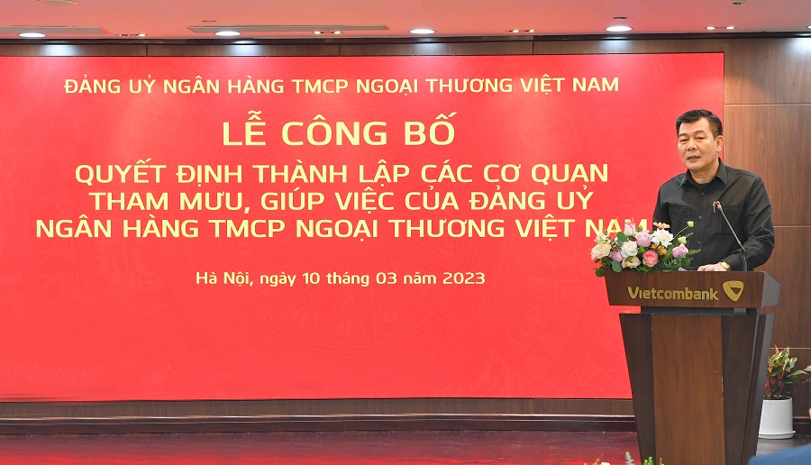Tại buổi Lễ công bố, đ/c Bí thư Đảng ủy Vietcombank đã chỉ đạo và giao nhiệm vụ cho các ban tham mưu, giúp việc của Đảng uỷ: