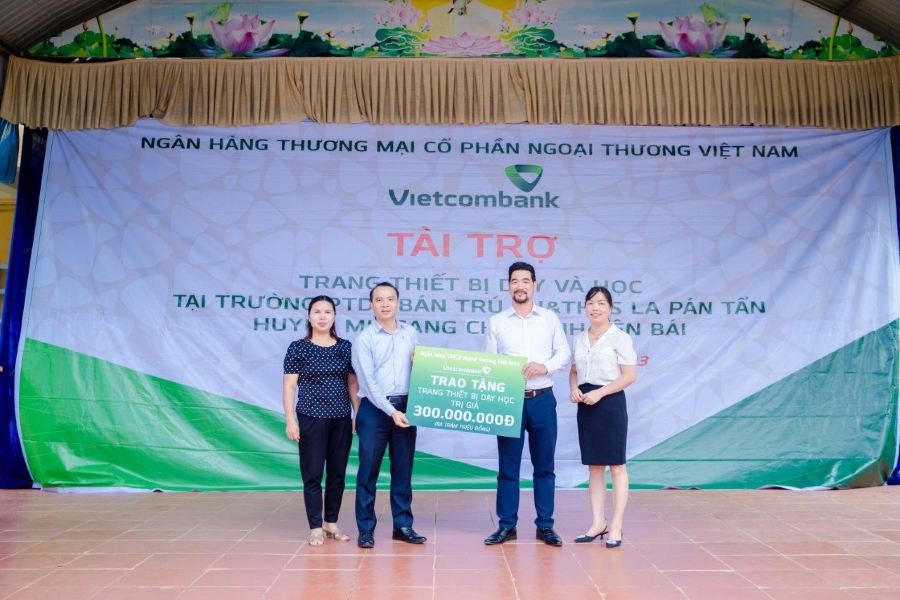 Theo đó, Vietcombank đã trao tặng thầy và trò Trường PTDTBT TH&THCS xã La Pán Tẩn 2 tivi 55 inh, 60 bộ bàn ghế học sinh, 25 bộ bàn ăn, 15 tủ sắt tài liệu, 1 camera phục vụ cho việc học trực tuyến, 5 camera giám sát, 1 loa kéo.... với tổng trị giá 300 triệu đồng.