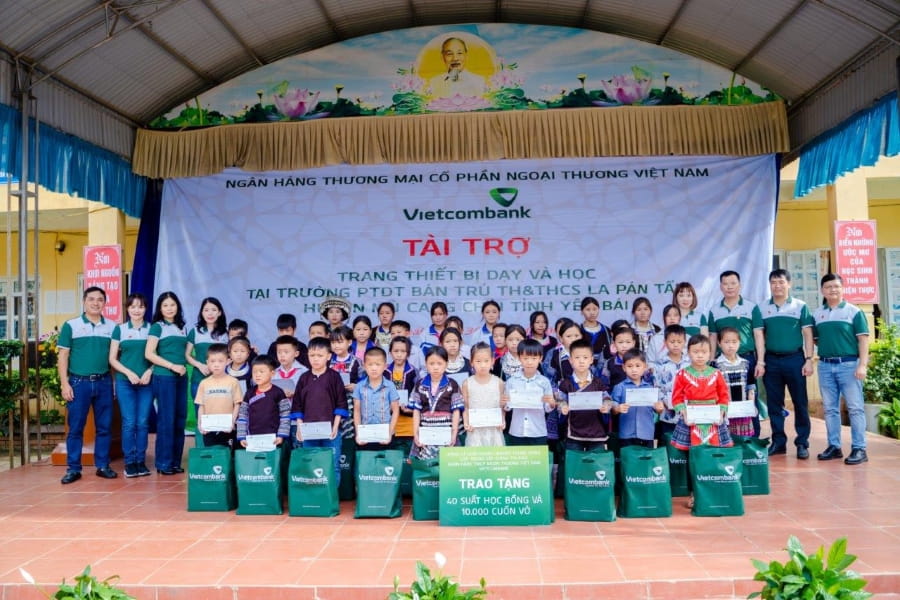 Nhân dịp này, Vietcombank và lớp TC LLCT K162 đã đến trao tài trợ trang thiết bị dạy học và học bổng cho học sinh có hoàn cảnh khó khăn của Trường Phổ thông Dân tộc bán trú (PTDTBT) TH&THCS xã La Pán Tẩn, huyện Mù Cang Chải, tỉnh Yên Bái.