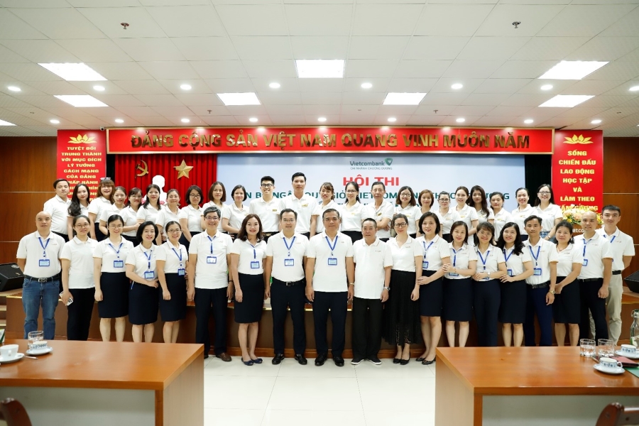 Toàn cảnh vòng thi sơ khảo Hội thi cán bộ ngân quỹ giỏi Vietcombank lần thứ VI, năm 2023